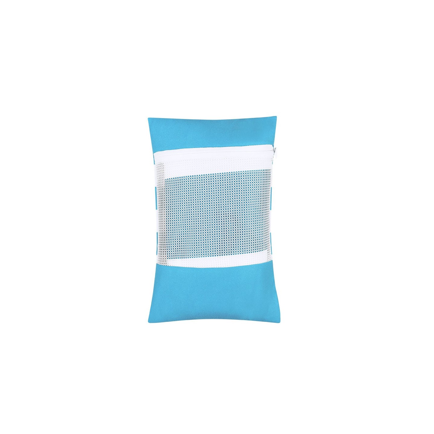 Una de sus características más sobresalientes es el práctico bolsillo impermeable triangular que se encuentra en una de las esquinas de la toalla. Este bolsillo, con cierre de cremallera, ofrece un espacio seguro y protegido para guardar tus pertenencias personales, como llaves, teléfonos o billeteras, sin preocuparte por la humedad.