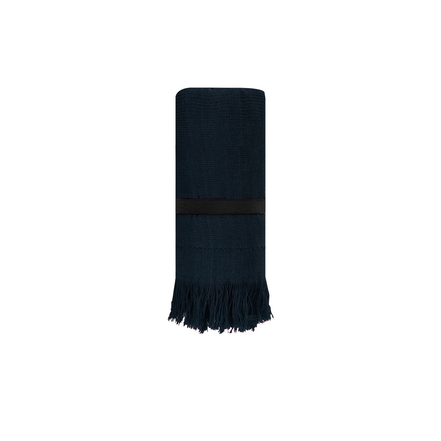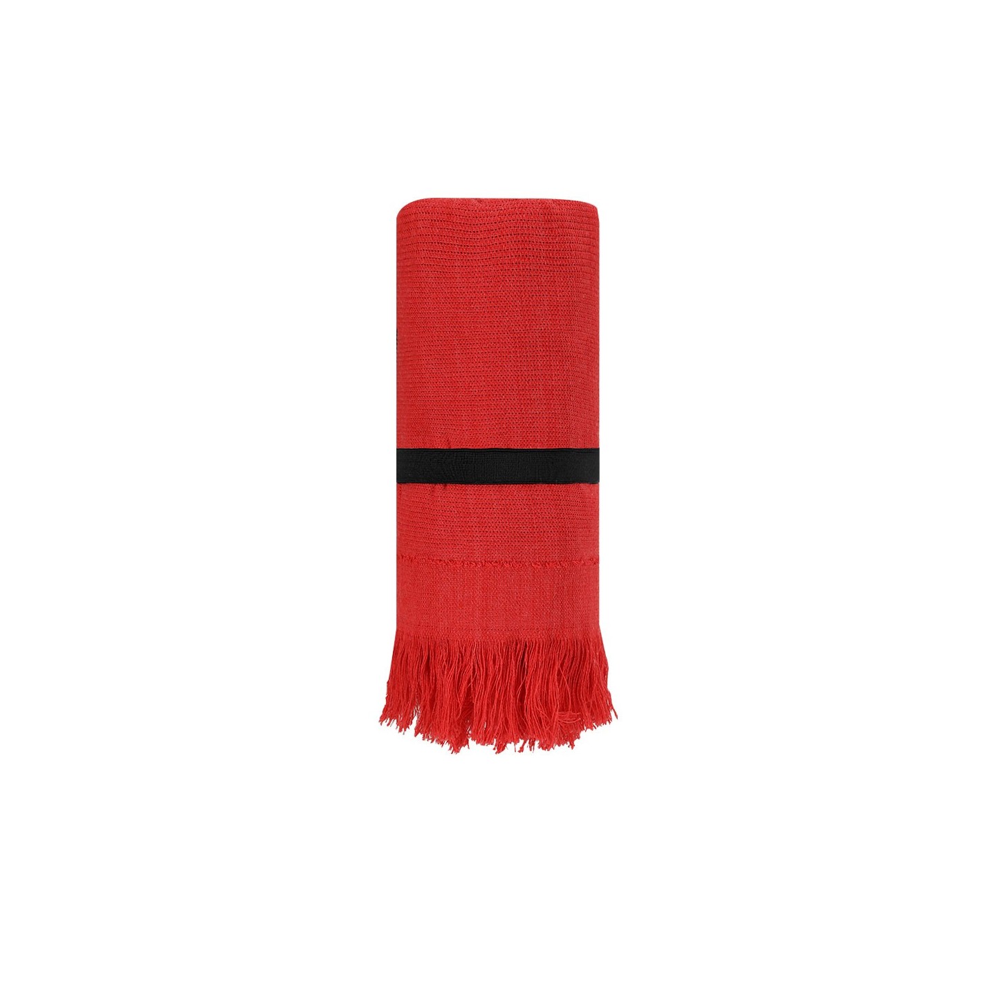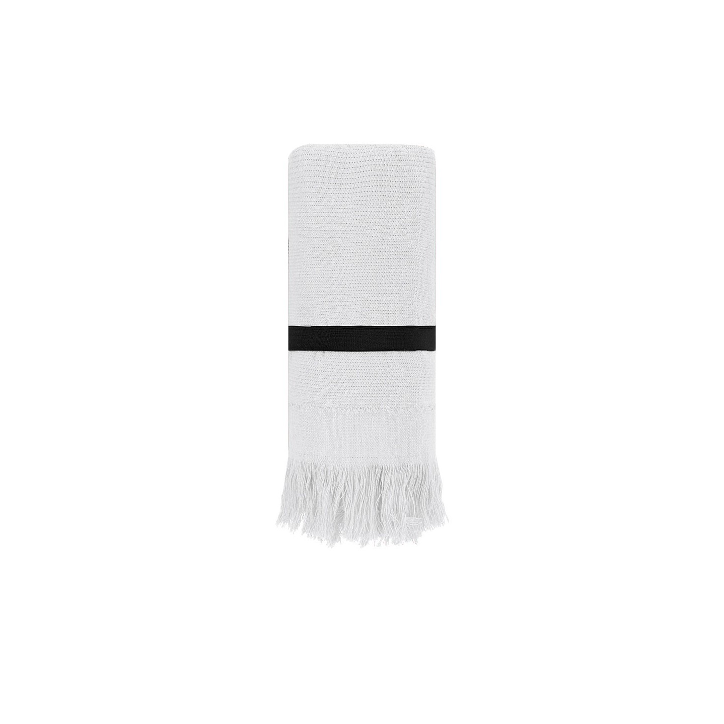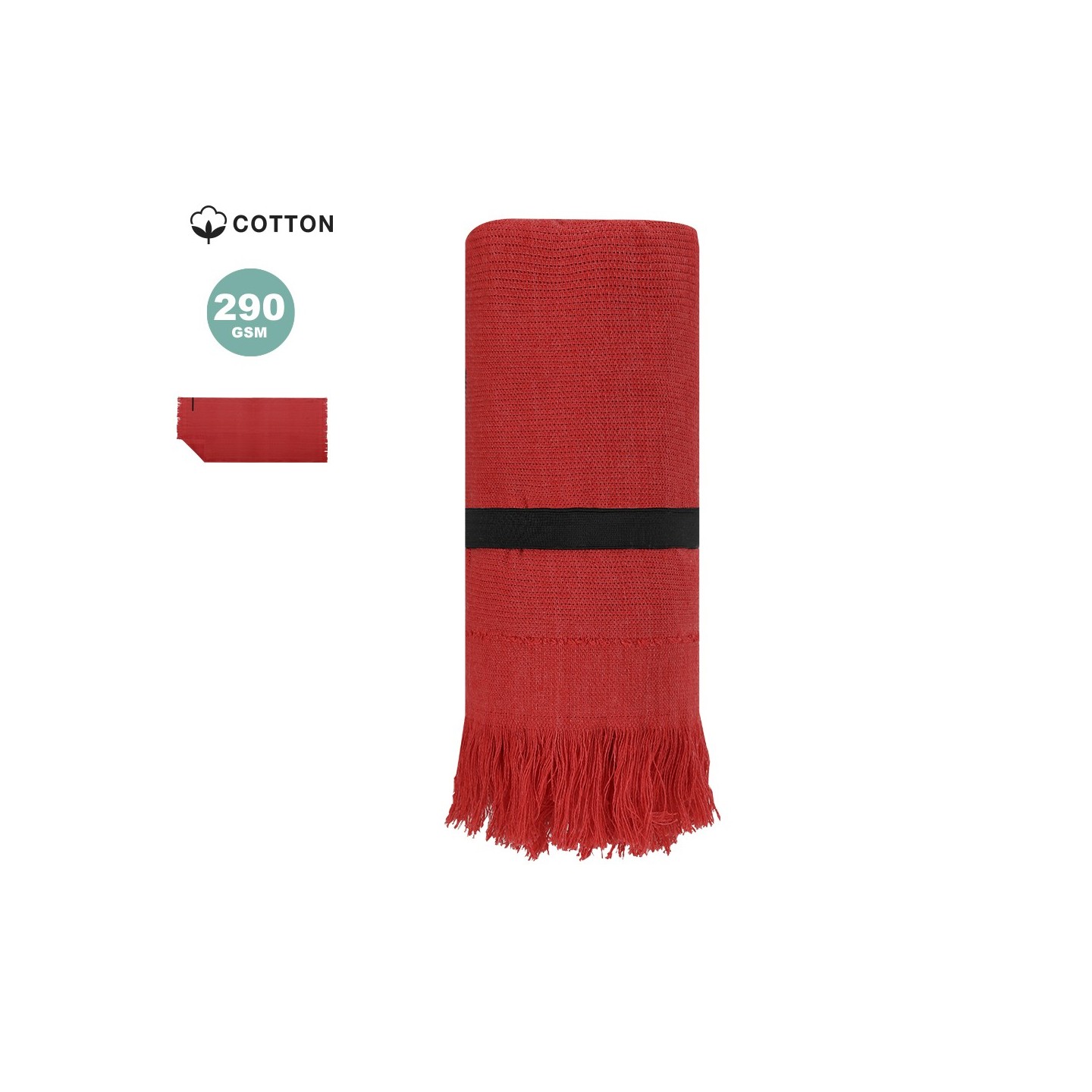 Toalla BRISLY, de algodón suave (290g/m²) con flecos elegantes y cinta elástica para fácil transporte. Personalizable con tu logo. Medidas: 70x150 cm.