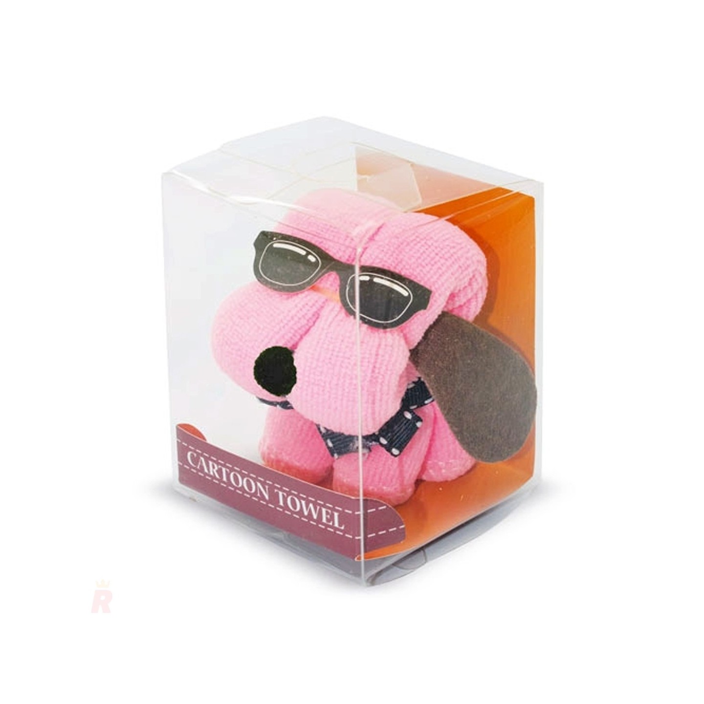 Con una forma divertida de perrito, la toalla incluye detalles adorables como orejas marrones, unas gafas de sol negras de papel, una nariz negra y un lazo negro con puntos blancos alrededor del cuello, haciendo que cada baño sea una experiencia lúdica y entretenida.