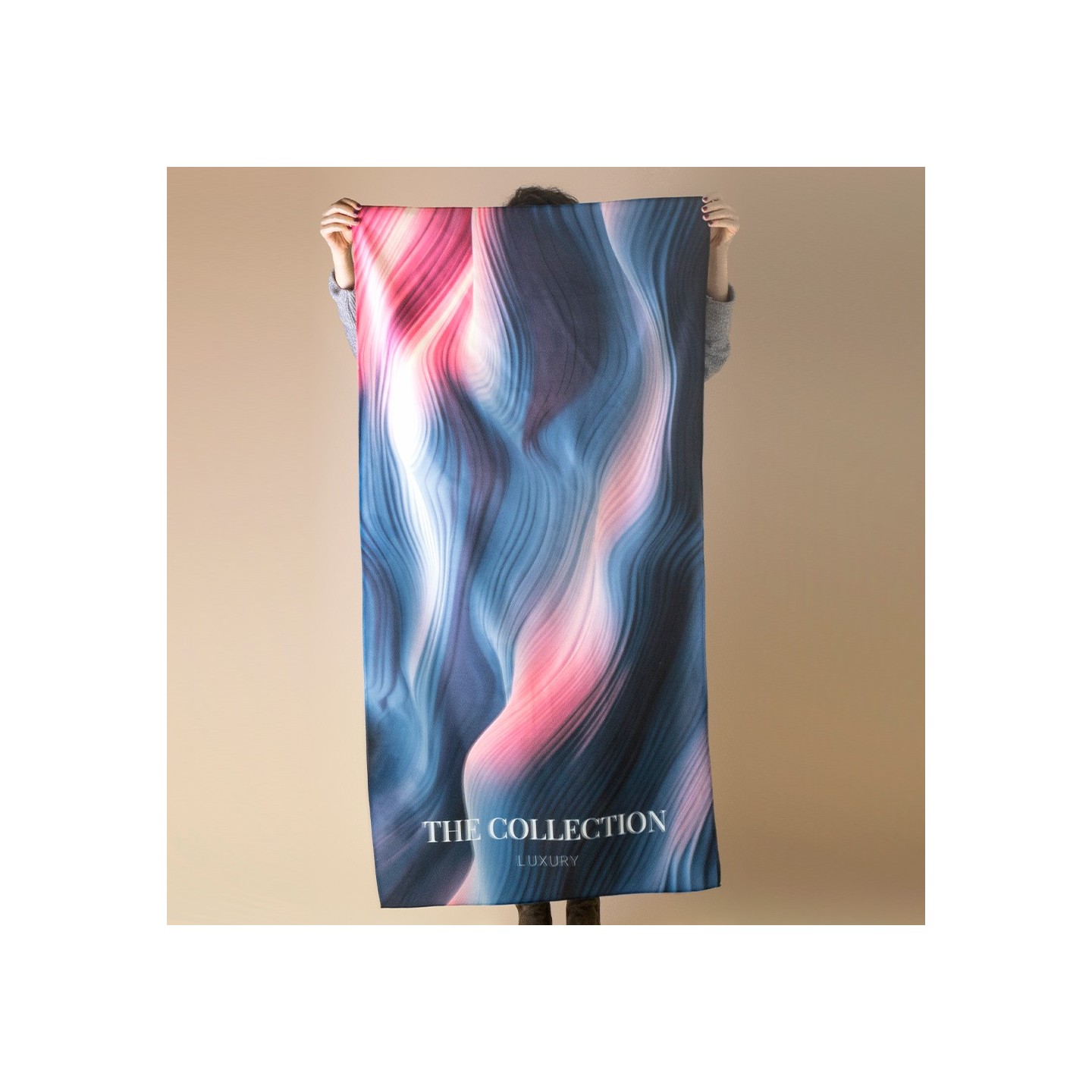 La Toalla Koraha es de fabricación europea, tejido suede (88% poliéster, 12% poliamida), 200 gr/m². Personalización vibrante para regalos y eventos exclusivos