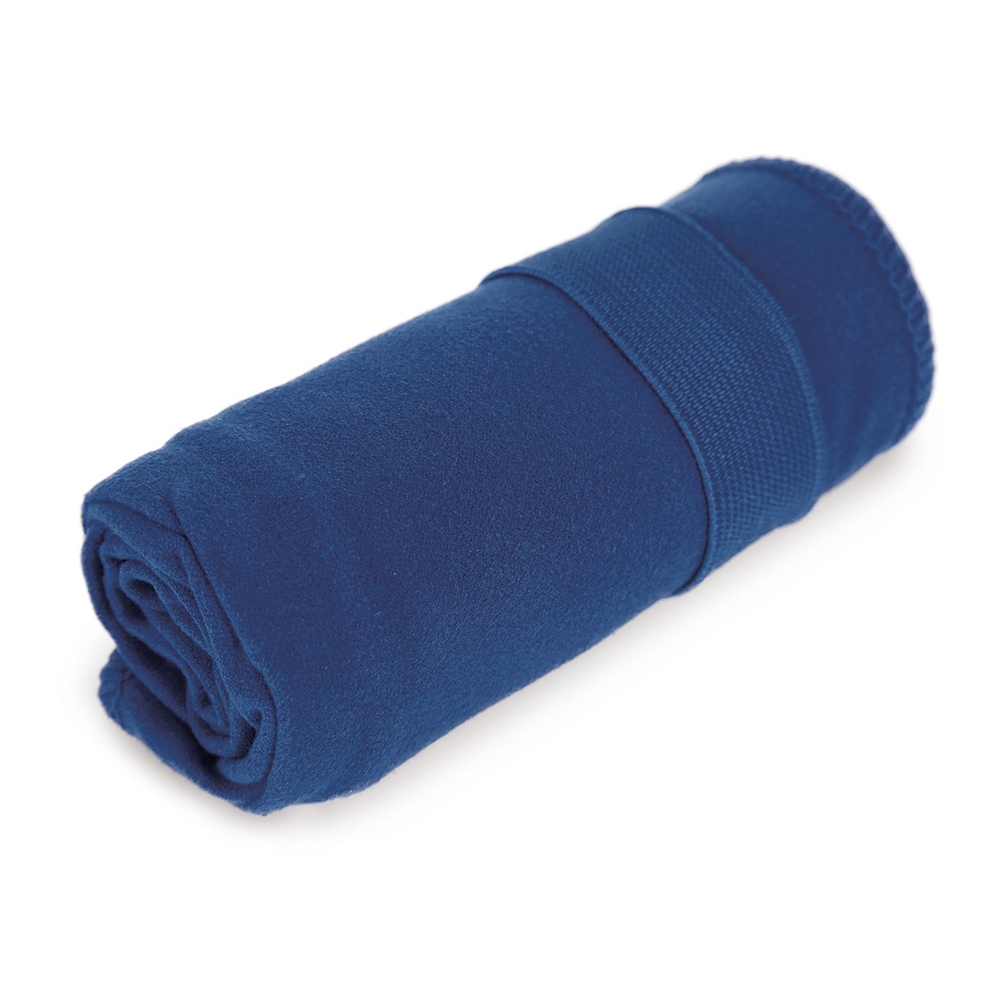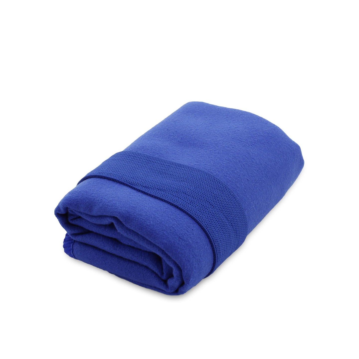 Toalla plegable de microfibra con correa de sujeción, fácil de transportar y disponible en varios colores. Ideal para viajes y actividades al aire libre