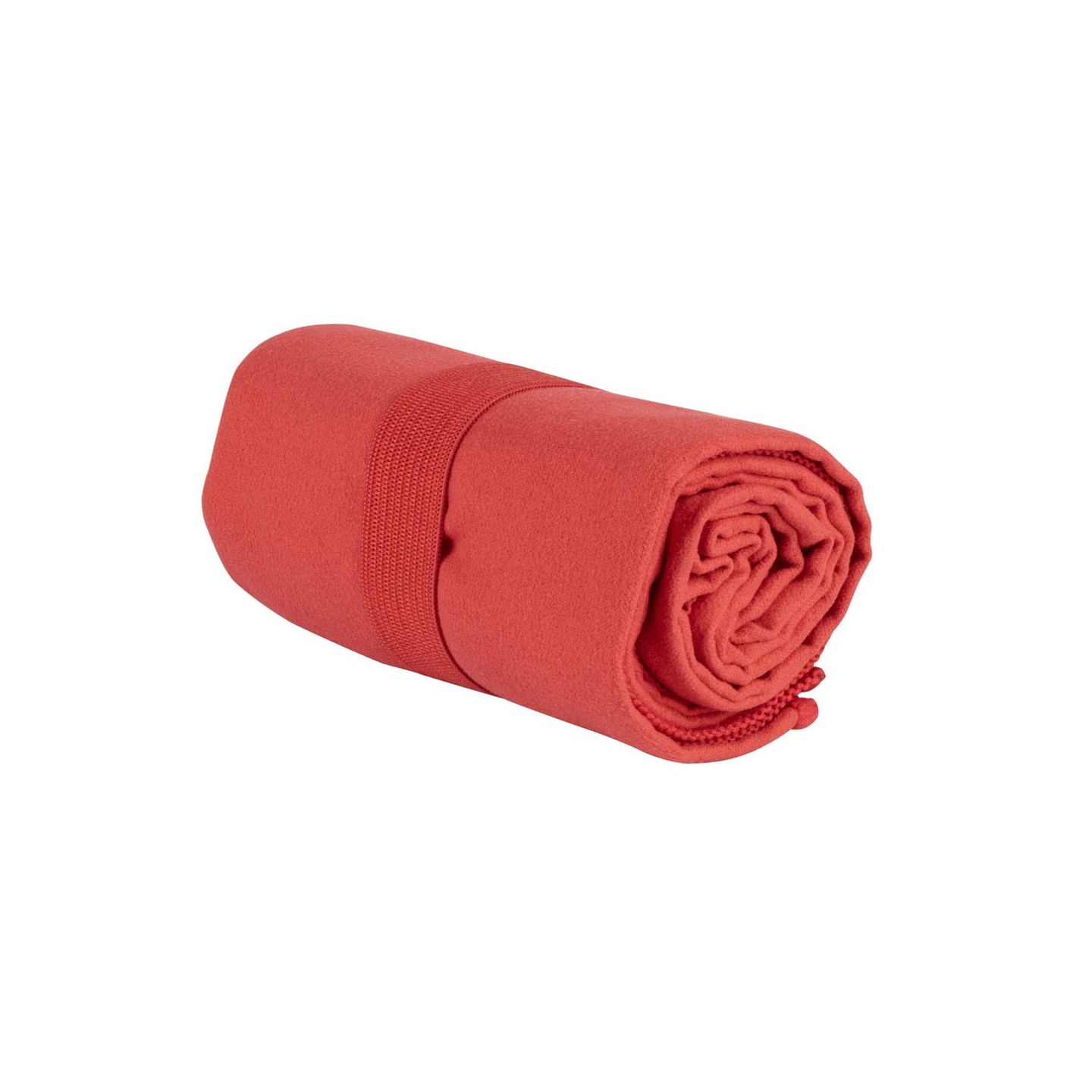 Toalla TIRNI RPET de microfibra extrafina, ligera y absorbente, con cierre elástico para fácil plegado y transporte. Personalizable, ideal para gimnasio.