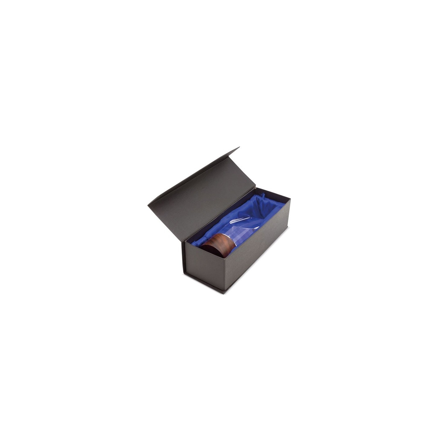 Este trofeo se presenta en un estuche acolchado con cierre imantado, asegurando una protección óptima y una presentación sofisticada que realza su valor. Con unas medidas de 7 cm de diámetro y 23,80 cm de altura, su presencia es imponente sin resultar excesiva, adaptándose perfectamente a cualquier espacio de exhibición.