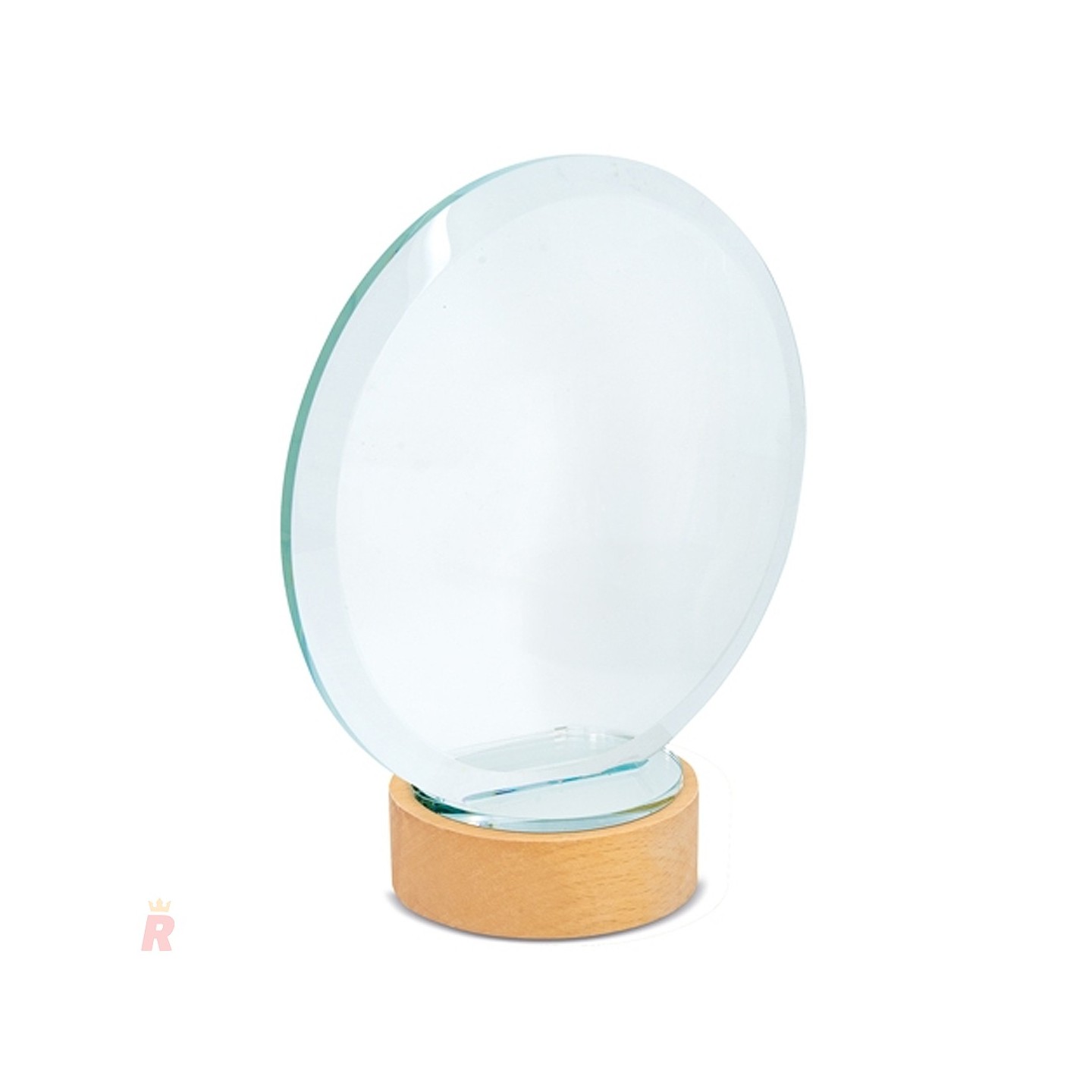 El Trofeo NOVO es una pieza de cristal ecológico y sostenible, diseñada para premiar logros con un estilo elegante y sofisticado. Su placa de vidrio en forma circular aporta un diseño armonioso y moderno, perfecto para eventos de reconocimiento y premiaciones especiales. Se apoya sobre una base redonda de madera, que realza su presencia con un toque natural y distinguido.