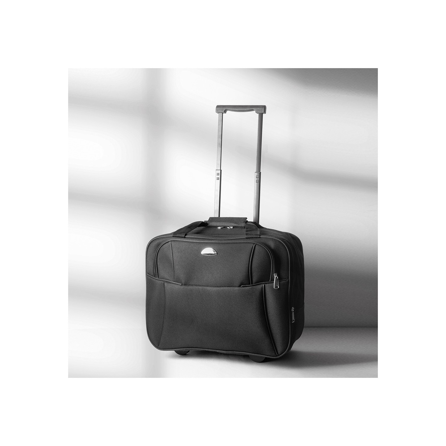 Descubre el Trolley Laptop fabricado en poliéster 600D, dos ruedas, compartimento para portátiles y zona de marcaje. La elegancia en tus viajes de negocios.