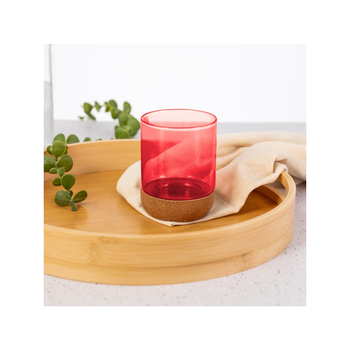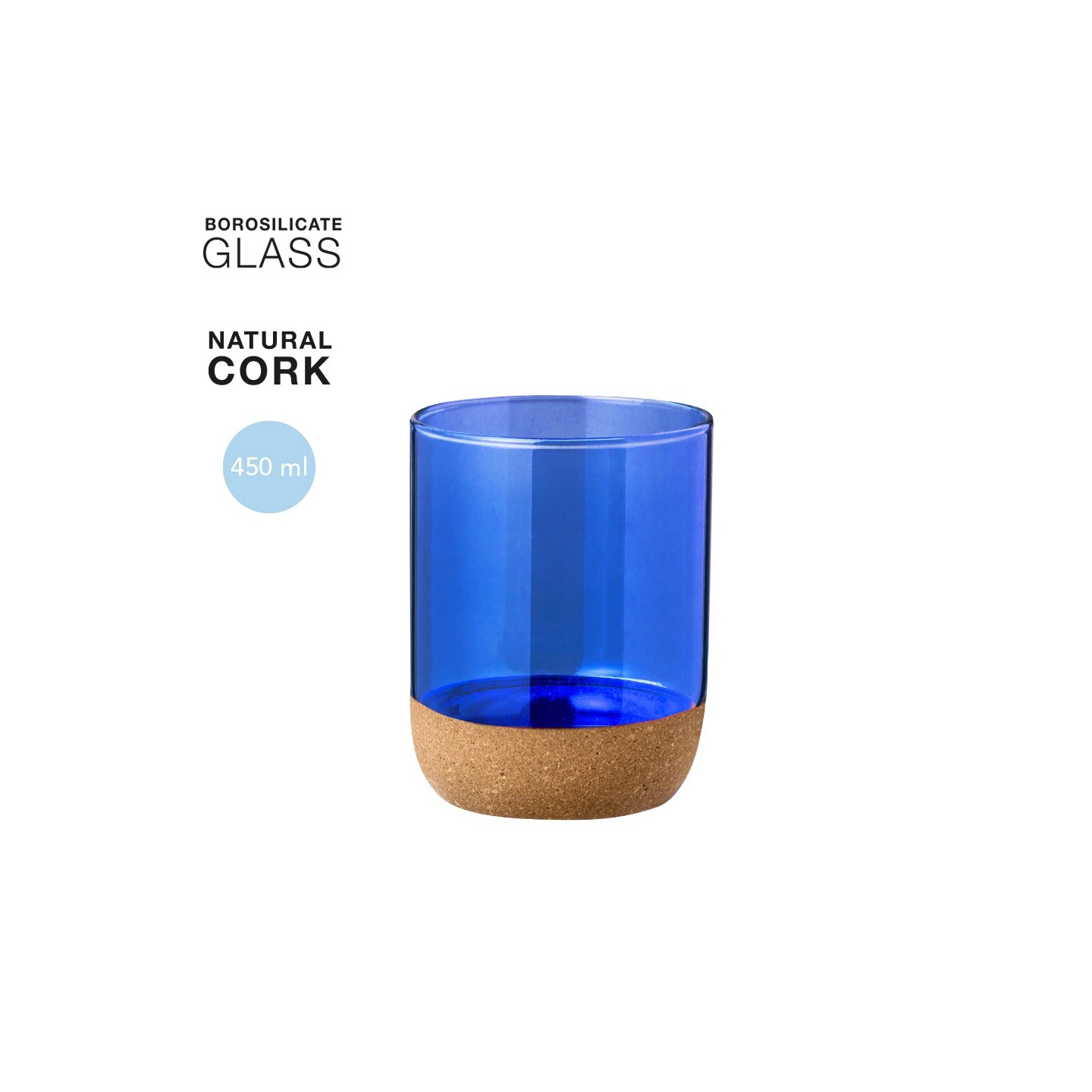 Con una capacidad de 450 ml, este vaso de cristal de borosilicato es una obra maestra de diseño, fusionando la transparencia del cristal con la calidez del corcho en una variedad de colores translúcidos.