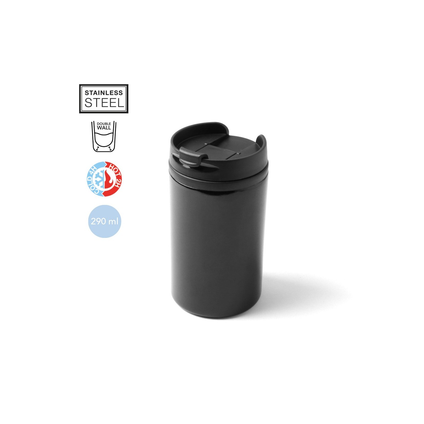 Este vaso está fabricado en acero inoxidable de alta calidad y tiene una capacidad de 290ml, perfecto para refrescarte en cualquier momento del día.