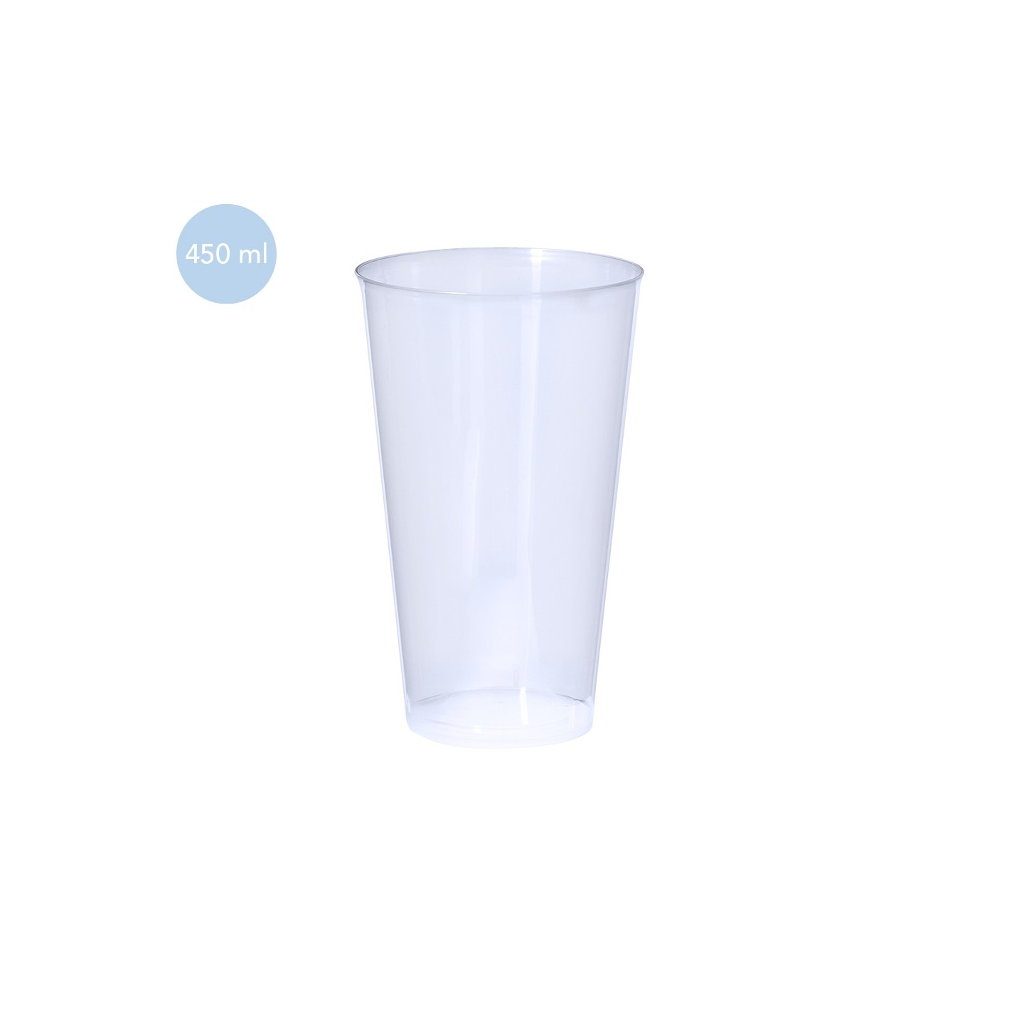 Vaso Combi de 450 ml en PP resistente y translúcido, reutilizable. Perfecto para promocionar tu marca con personalización.