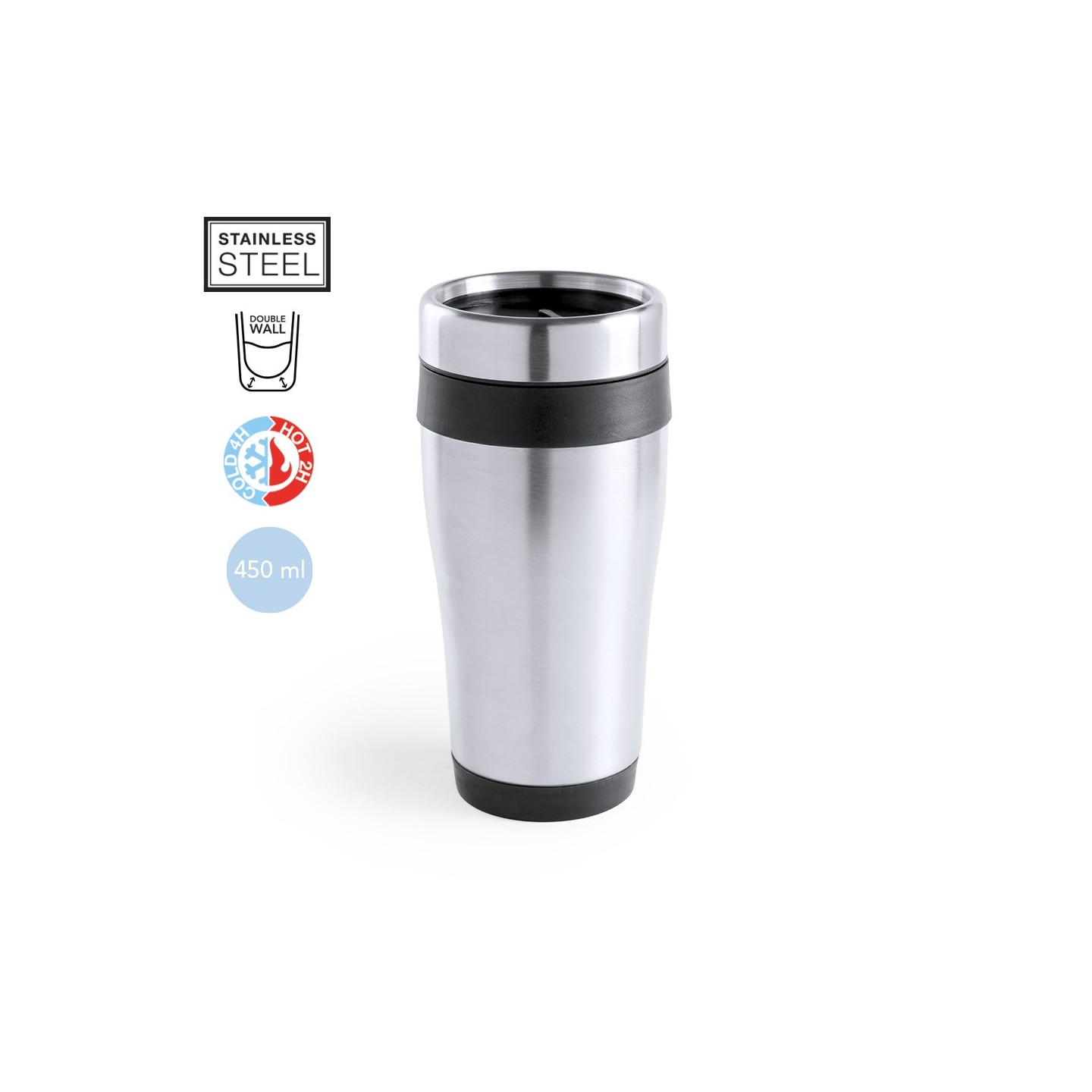 Vaso Fresno de acero inoxidable con tapa dosificadora y accesorios a juego. Personalízalo y sorprende con un regalo único y funcional.