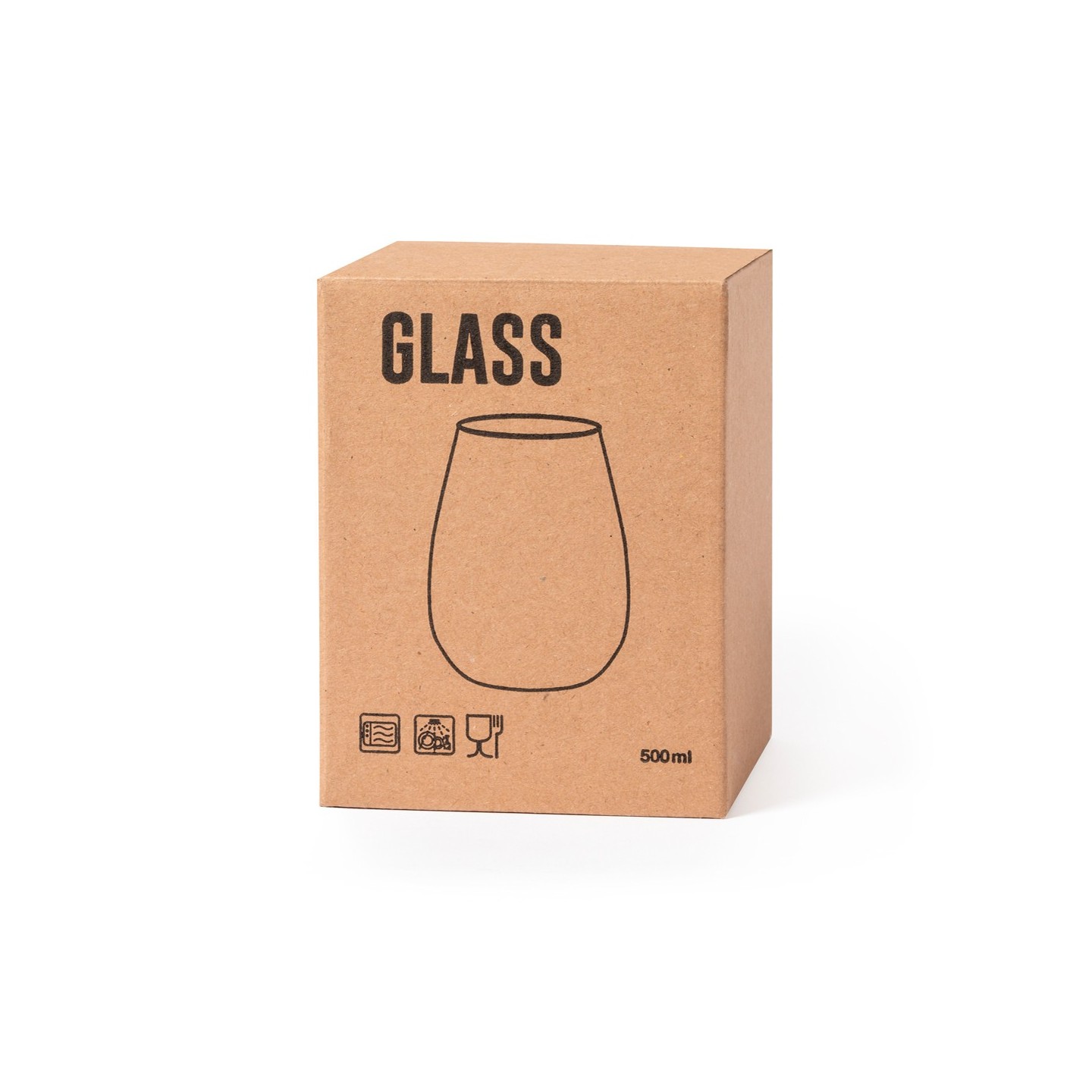 El Vaso Hernan es de cristal de 500ml, diseño curvado. Disfruta tus bebidas favoritas con estilo. Presentado en caja kraft.