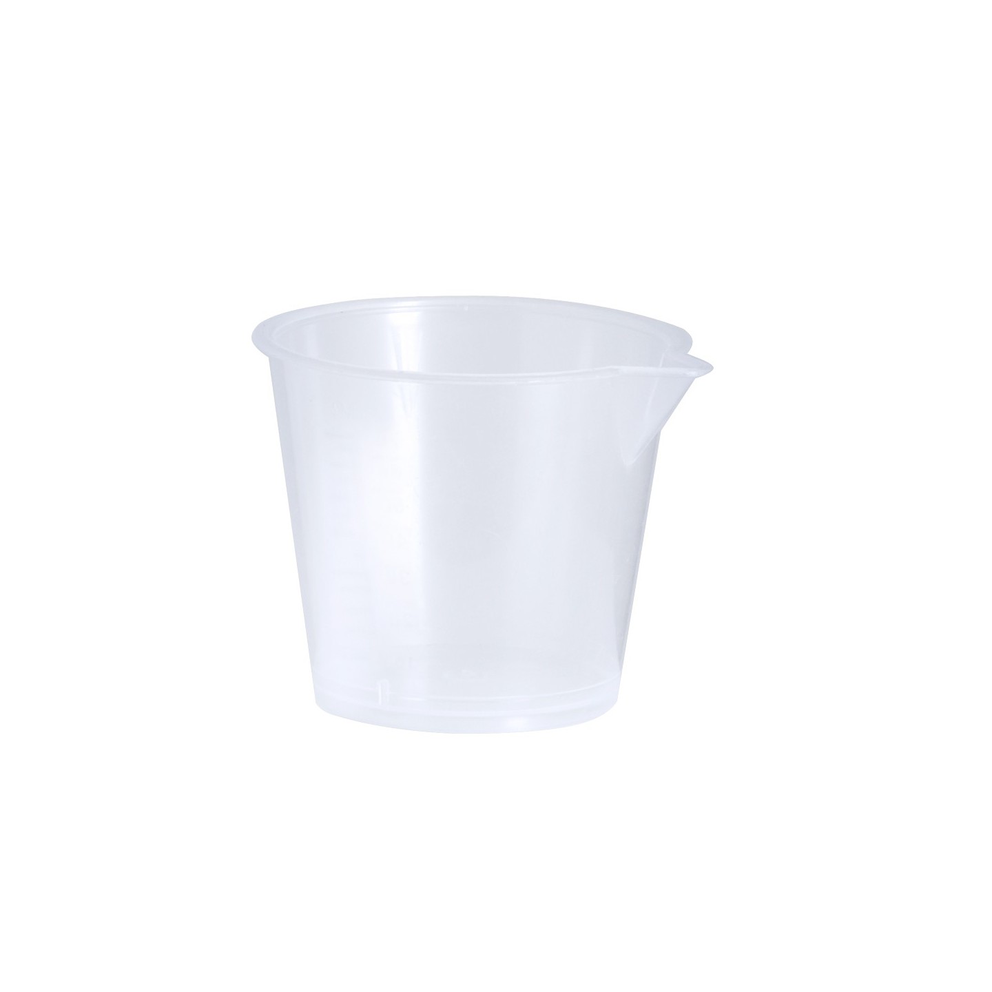 El Vaso Medidor Roswal es un vaso de 70 ml en PP transparente con medidor y vertedor. ¡Personalízalo con tu logo para resaltar tu marca!