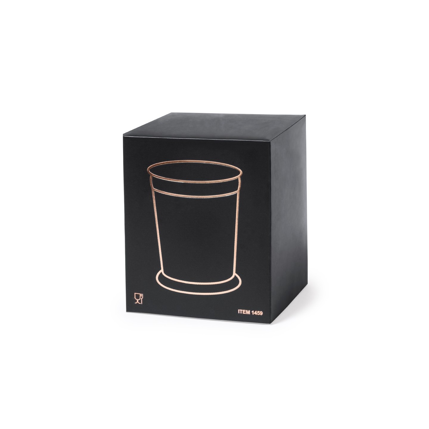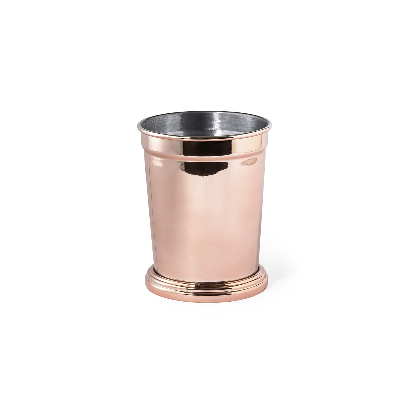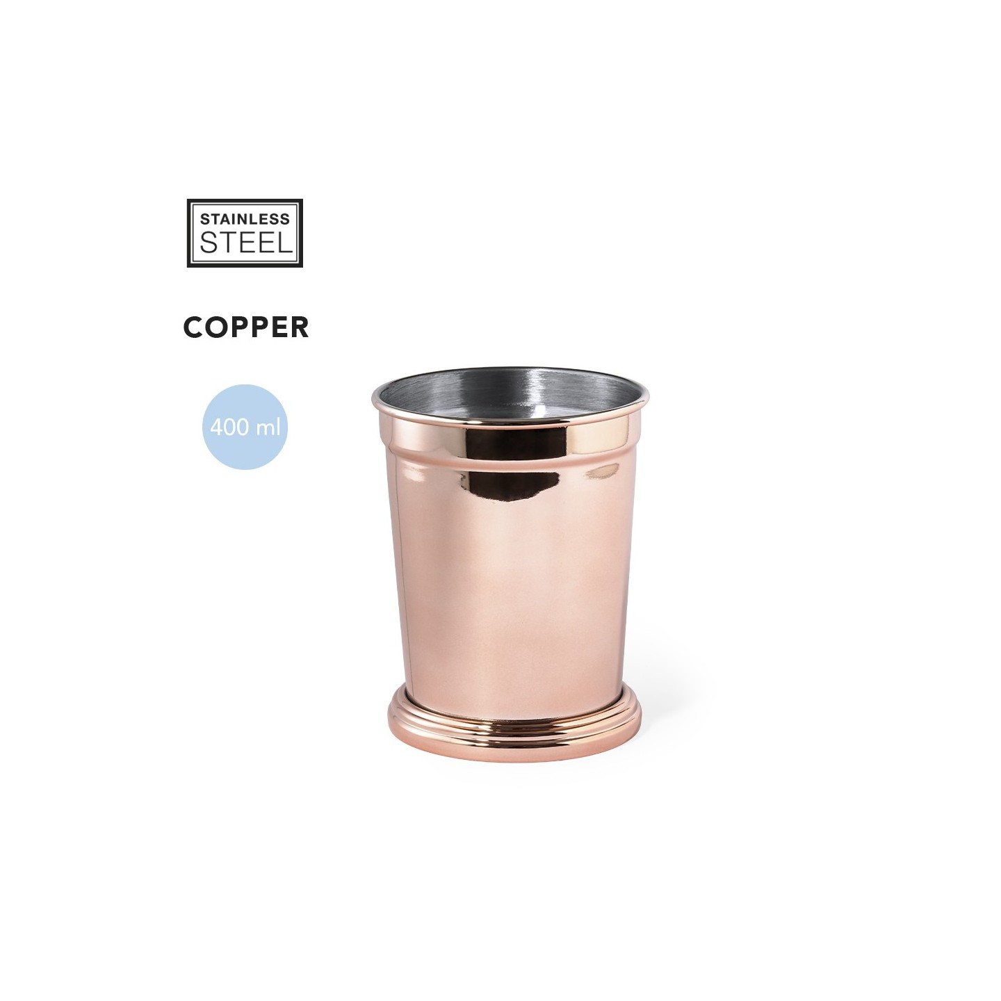 El Vaso Riberton es de acero inoxidable con recubrimiento de cobre galvanizado, capacidad de 400 ml y diseño innovador. Presentado en caja individual.