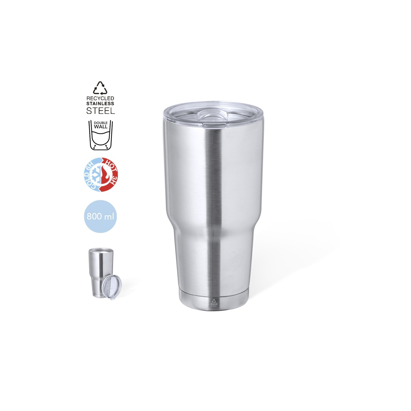 Vaso térmico personalizable de acero inox reciclado, 800ml, libre de BPA. Ideal para empresas con logotipo propio. Duradero y sostenible