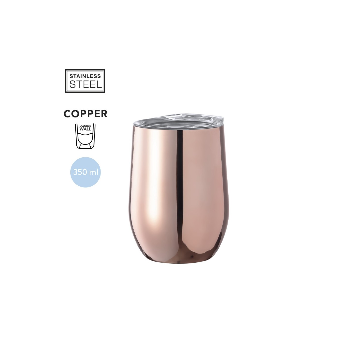Con una capacidad de 350 ml, podrás disfrutar de tu café, té o cualquier otra bebida en cualquier momento y lugar. Su recubrimiento exterior de cobre galvanizado le otorga un aspecto elegante y resistente, mientras que su tapa cuenta con un dosificador para un vertido preciso y sin derrames.