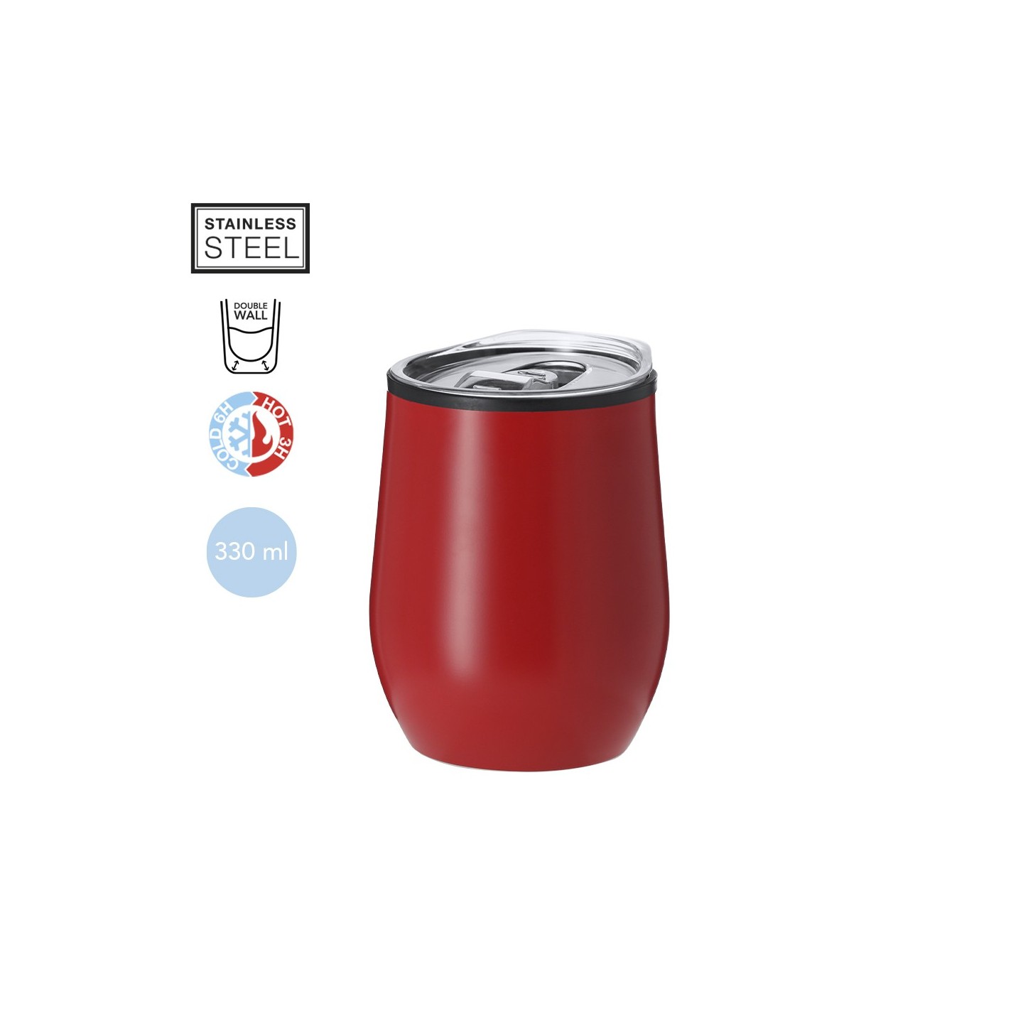 Vaso térmico HANLEY de 330 ml en acero inoxidable, mantiene bebidas frías 6H y calientes 3H. Compacto, libre de BPA y personalizable con tu logo.