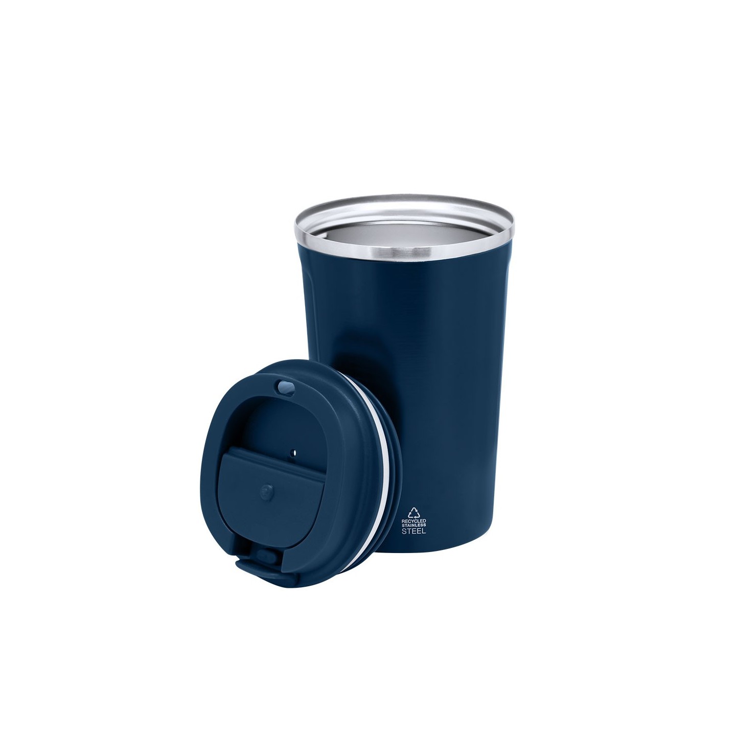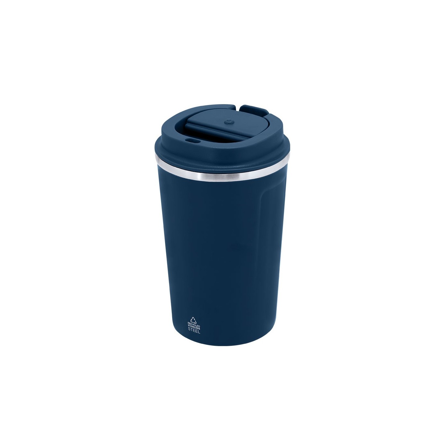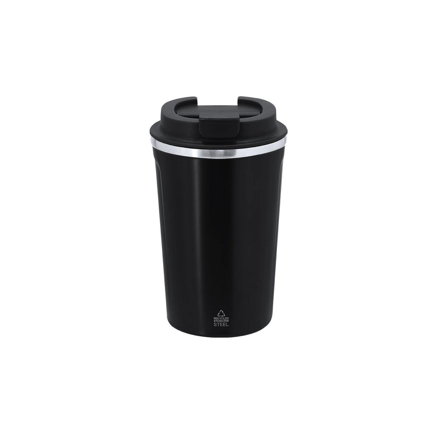 Vaso térmico de 400 ml en acero inoxidable reciclado, mantiene la temperatura hasta 6h frío y 3h calor. Personalizable con tu logotipo.