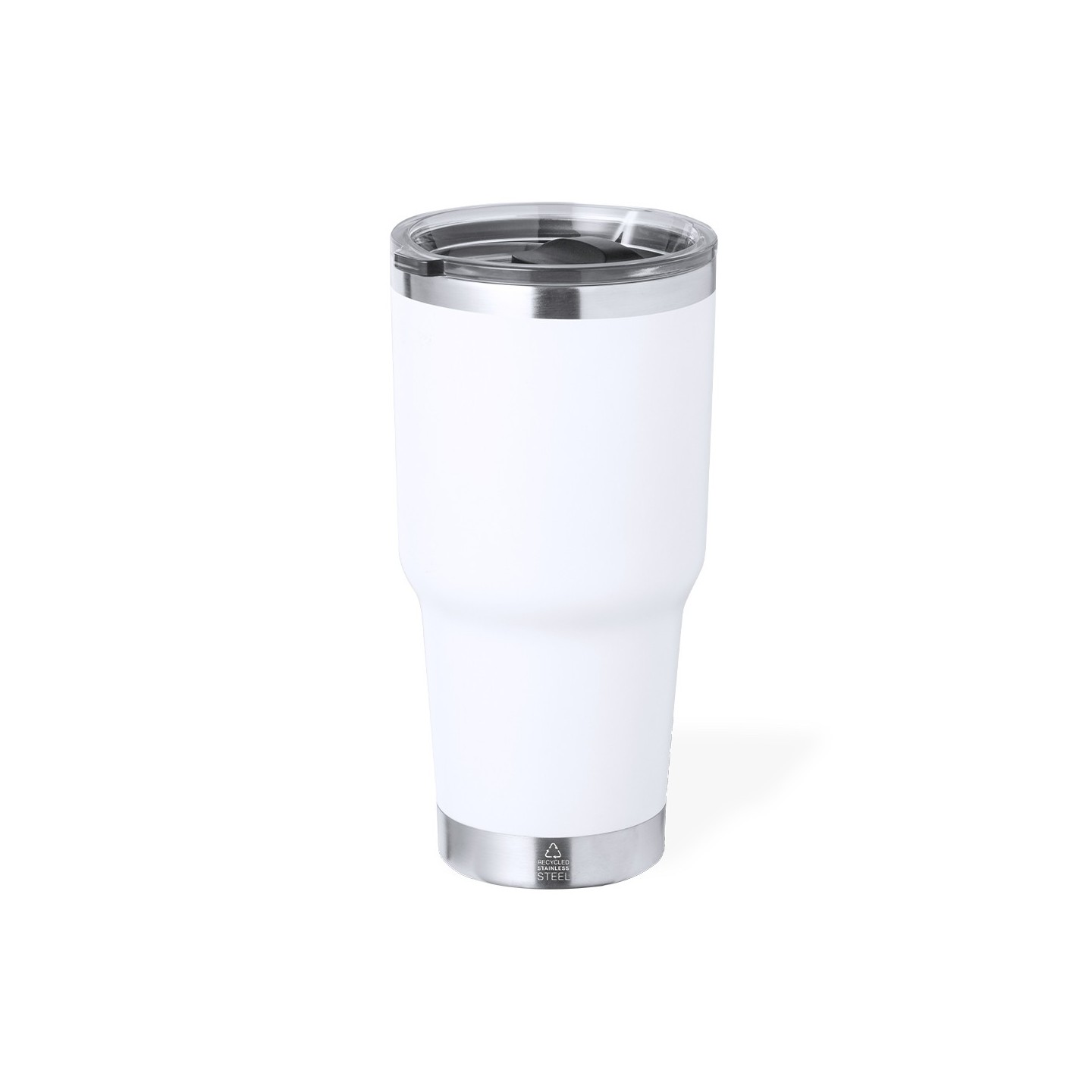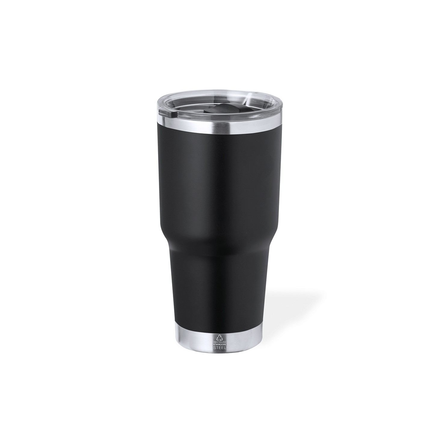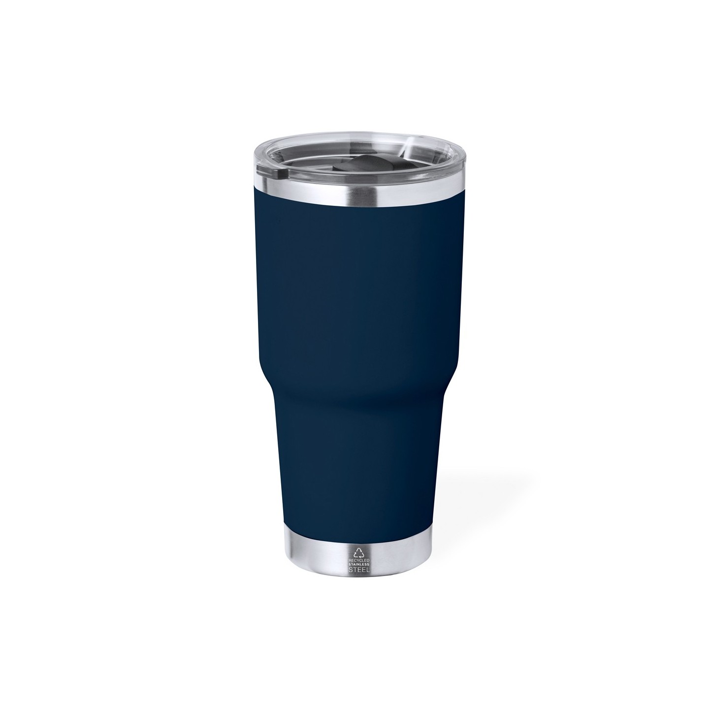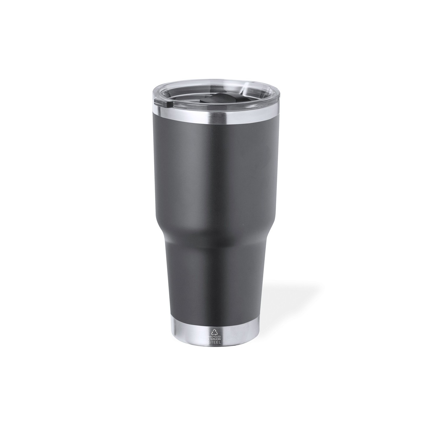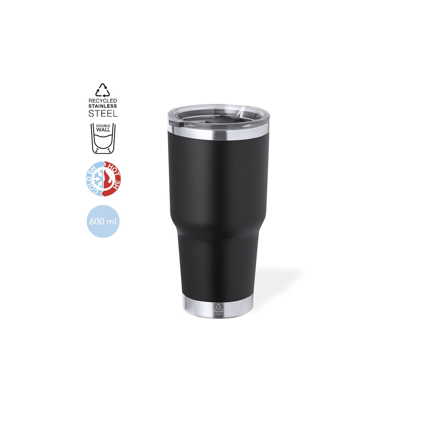 El Vaso Térmico Tobey mezcla sostenibilidad y estilo en tu mano. Fabricado en acero inox reciclado, personalizable con tu logo
