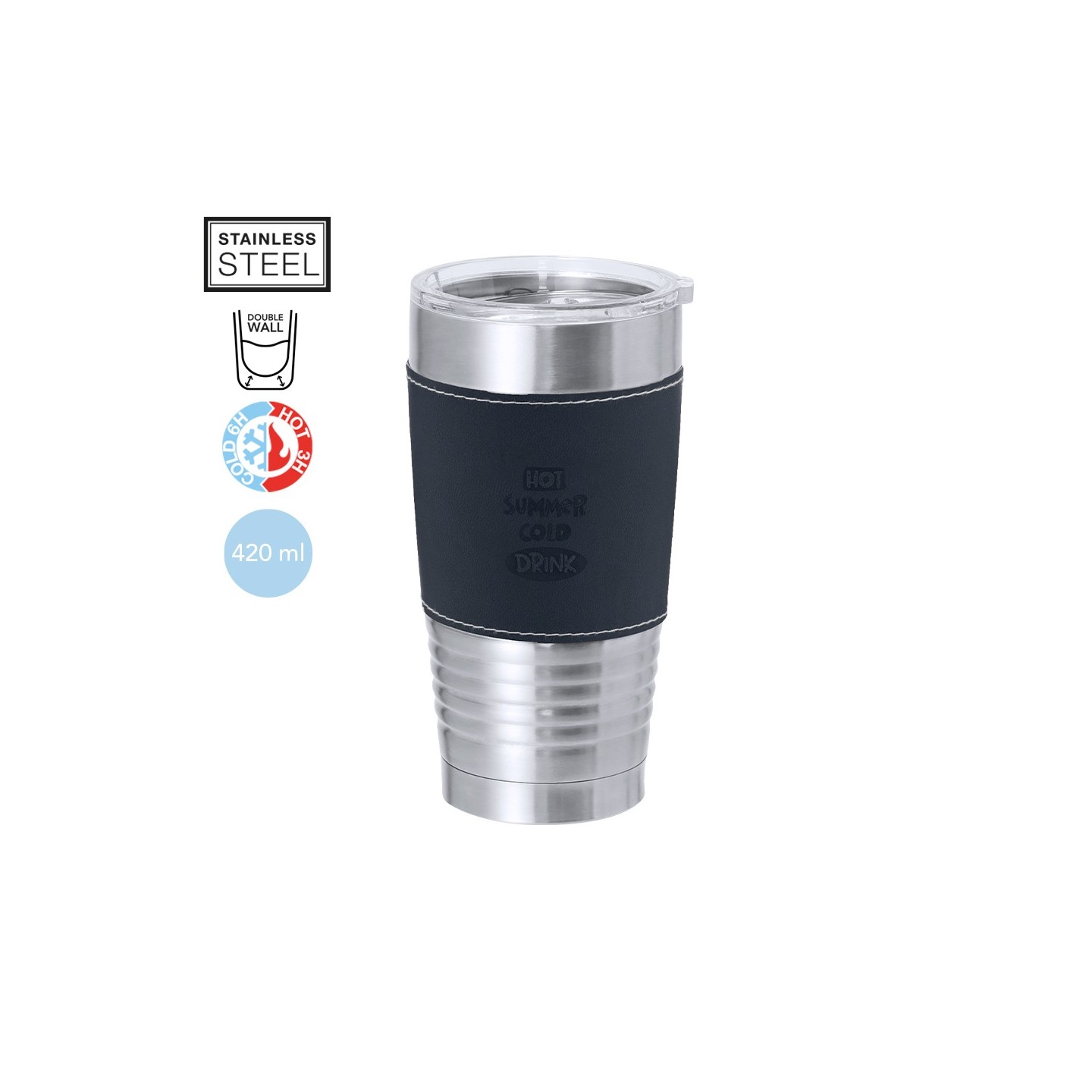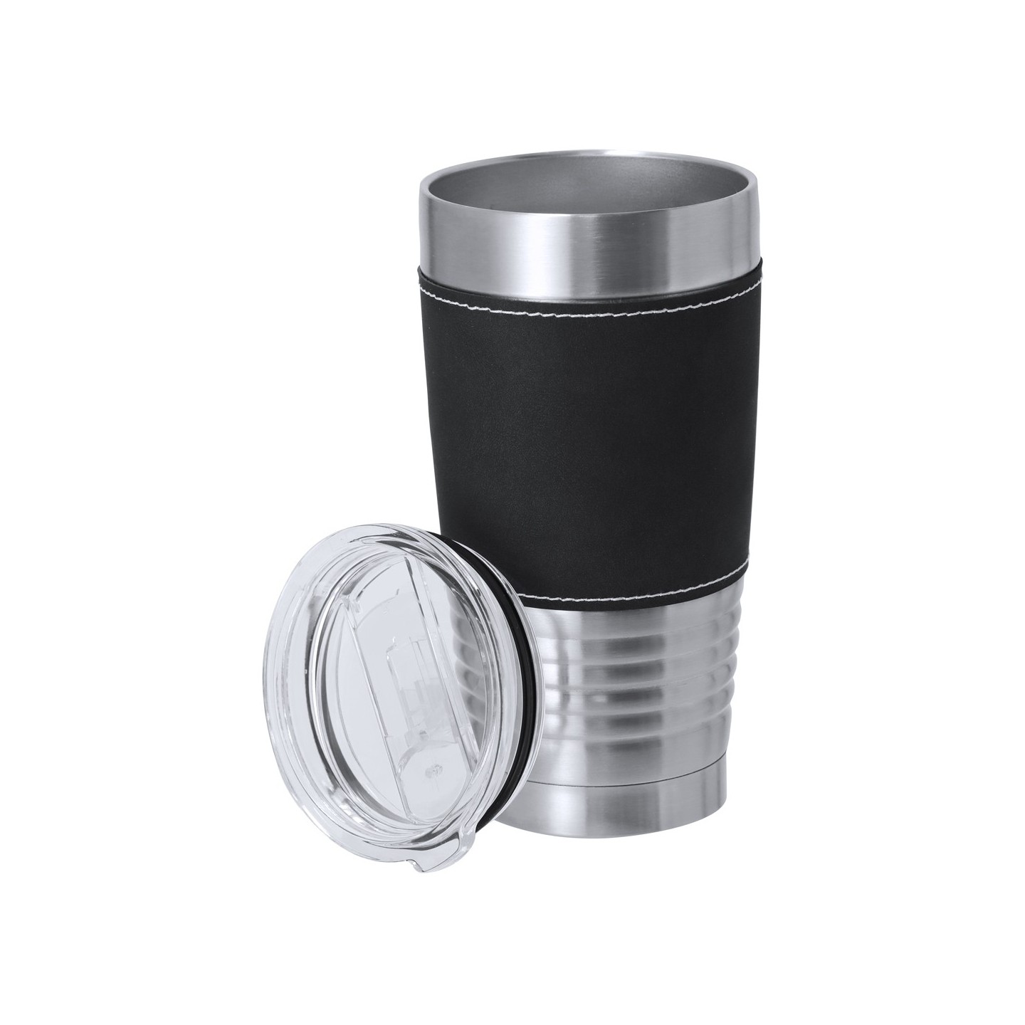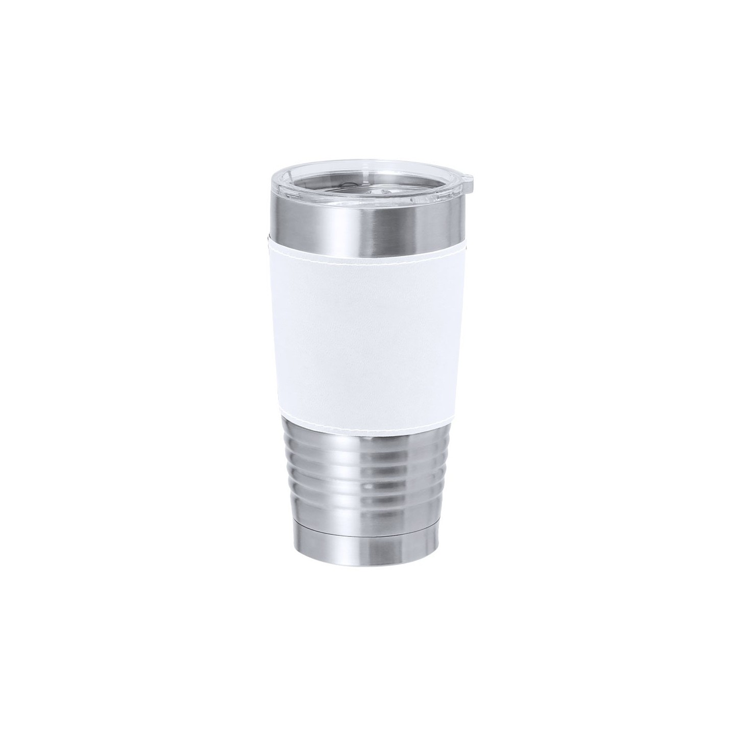El Vaso Térmico Zuncex, de acero inox de doble pared y 420 ml, incluye banda de PU y tapadera con dosificador. Personalizable y libre de BPA, ideal para cualquier bebida