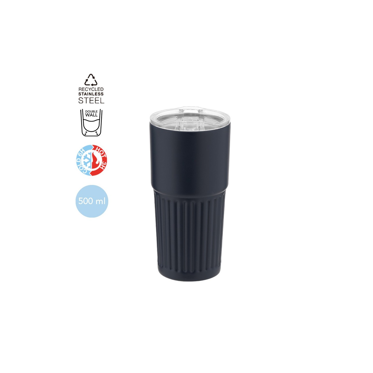 Vaso Térmico GILLAN de acero inoxidable reciclado, 500 ml, mantiene bebidas frías hasta 6h y calientes hasta 3h. Personalizable con logotipo. Ideal para oficina.