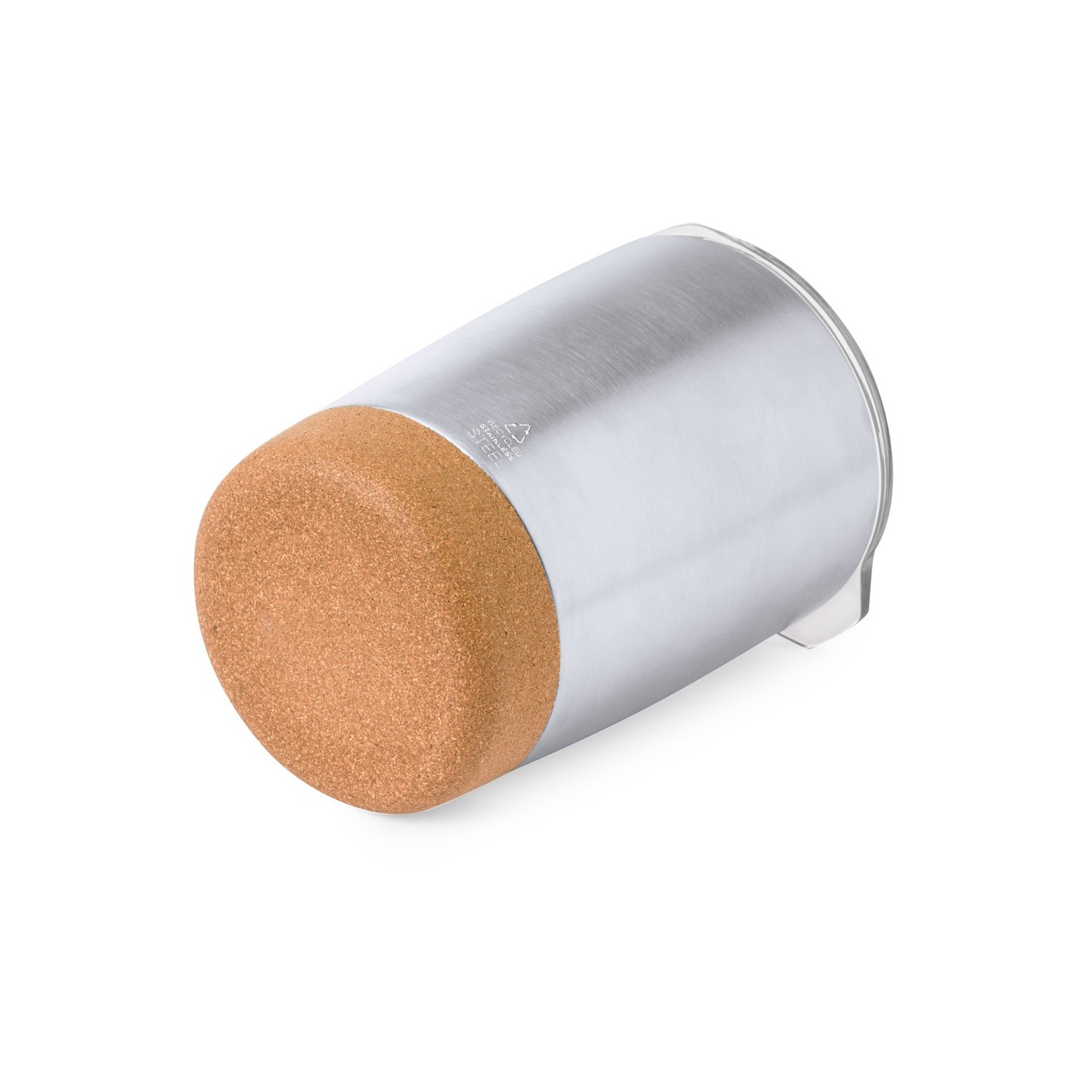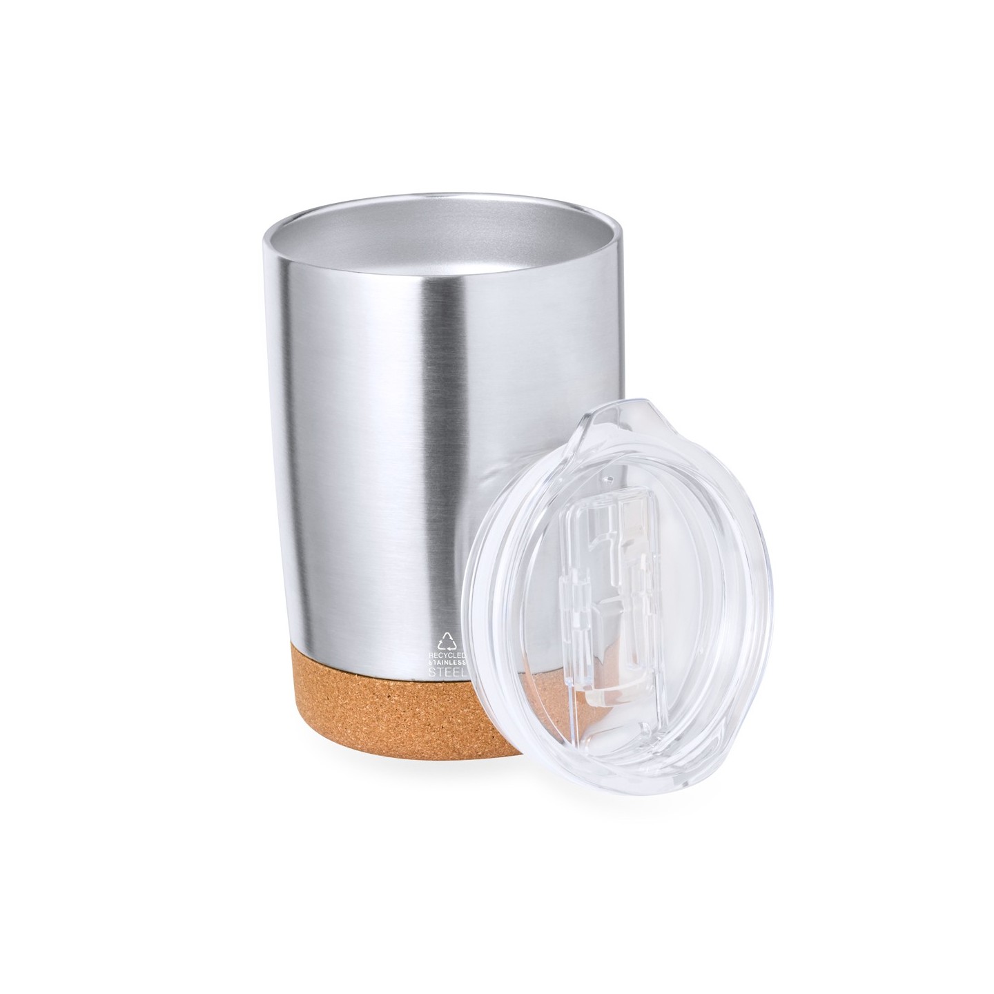 Con una base de corcho natural y un cuerpo de acero inoxidable reciclado con acabado plata, este vaso no solo es elegante, sino también respetuoso con el medio ambiente. Su diseño de doble pared garantiza una conservación óptima de la temperatura de tus bebidas, manteniéndolas calientes o frías durante más tiempo.