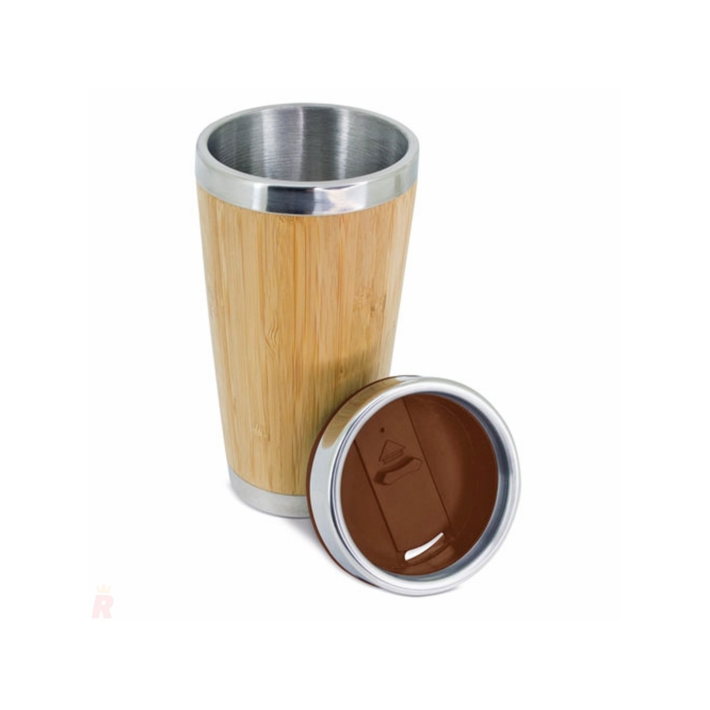 Vaso termo ecológico de 500 ml con acero inoxidable y bambú. Personalizable con logotipo. Incluye base antideslizante. Medidas: 17.50 x 8 cm.