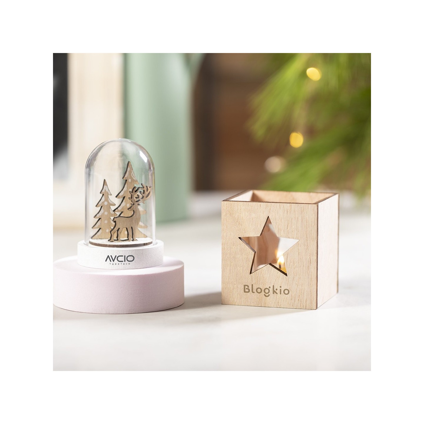 La vela viene presentada en una hermosa caja de madera troquelada, que realza su encanto y la protege de manera segura. El diseño de la caja, con detalles navideños, resalta la temática festiva de la vela y la convierte en un regalo completo y listo para sorprender.