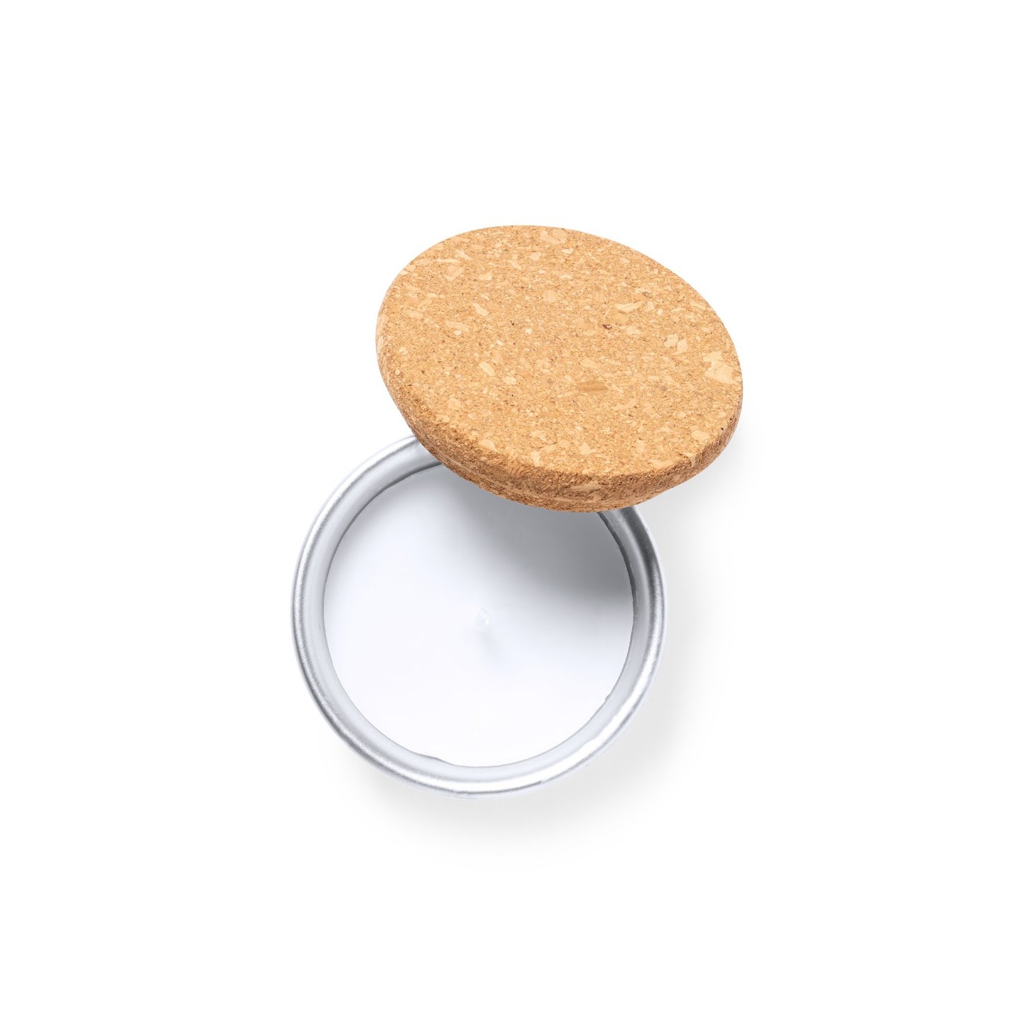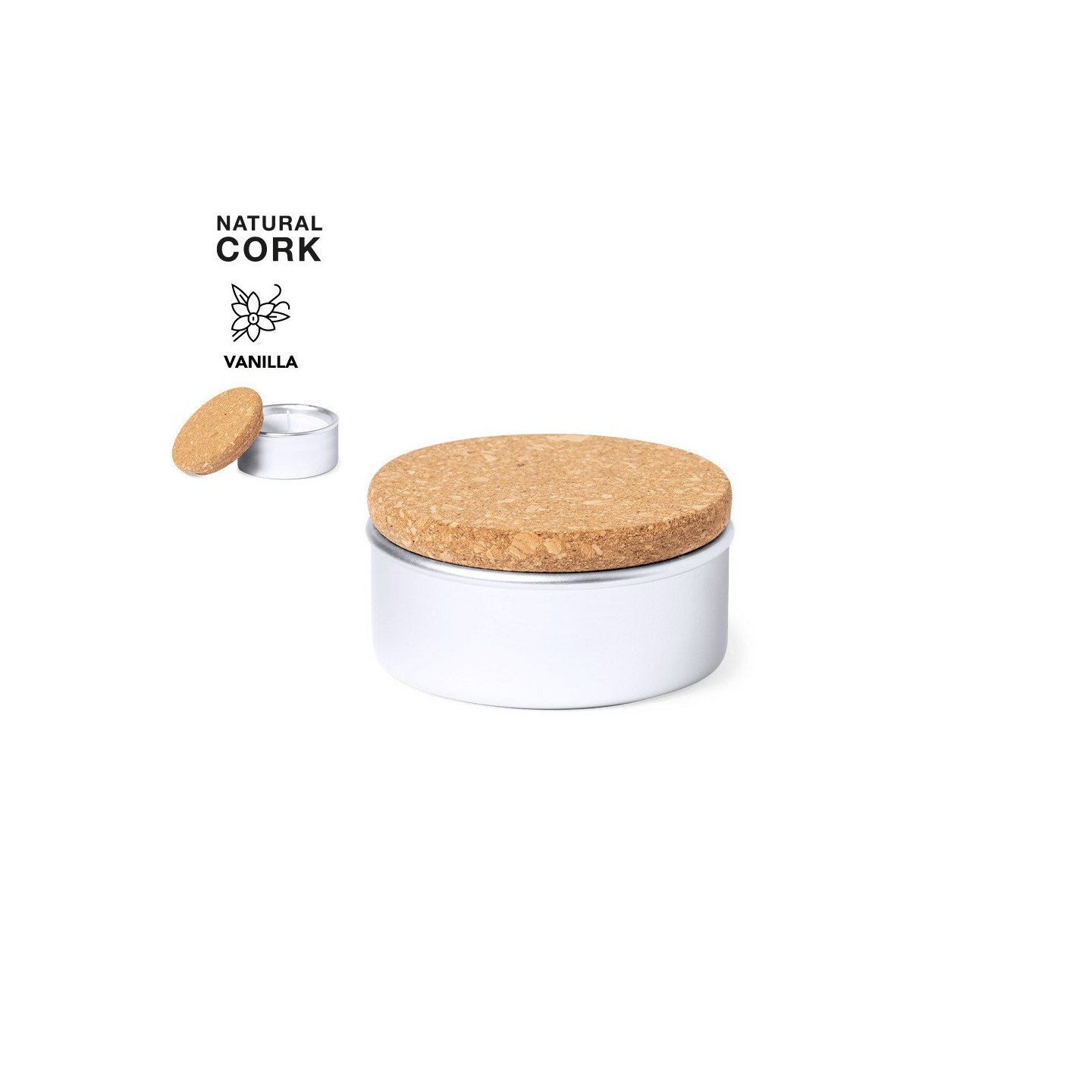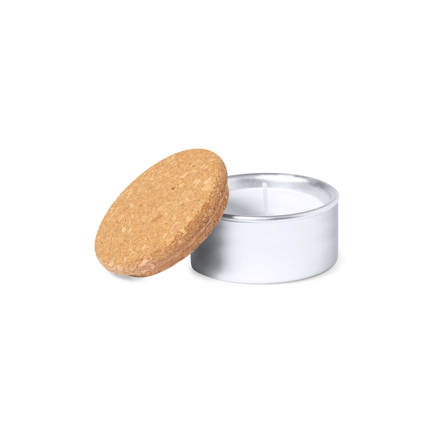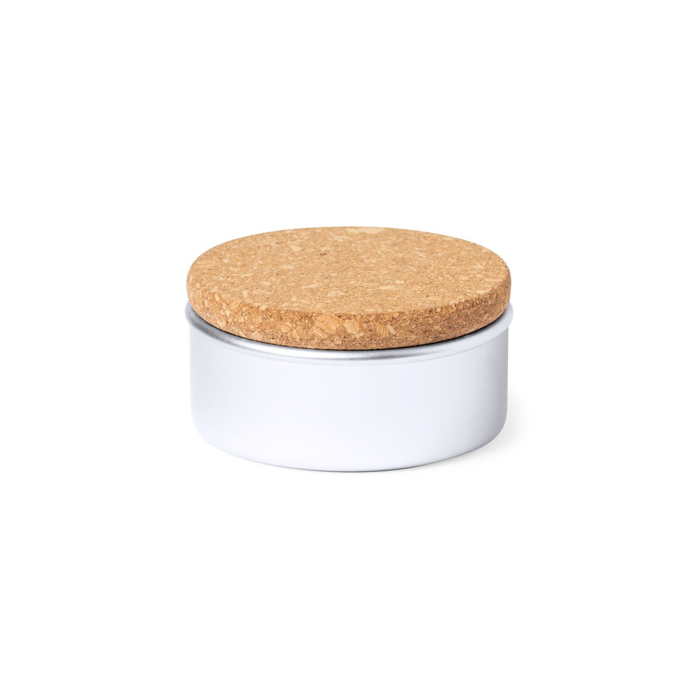 El tarrito de la vela está fabricado en aluminio, lo que le proporciona durabilidad y resistencia. Además, cuenta con un elegante tapón en corcho natural, que no solo añade un toque decorativo, sino que también ayuda a preservar el aroma de la vela cuando no está en uso.