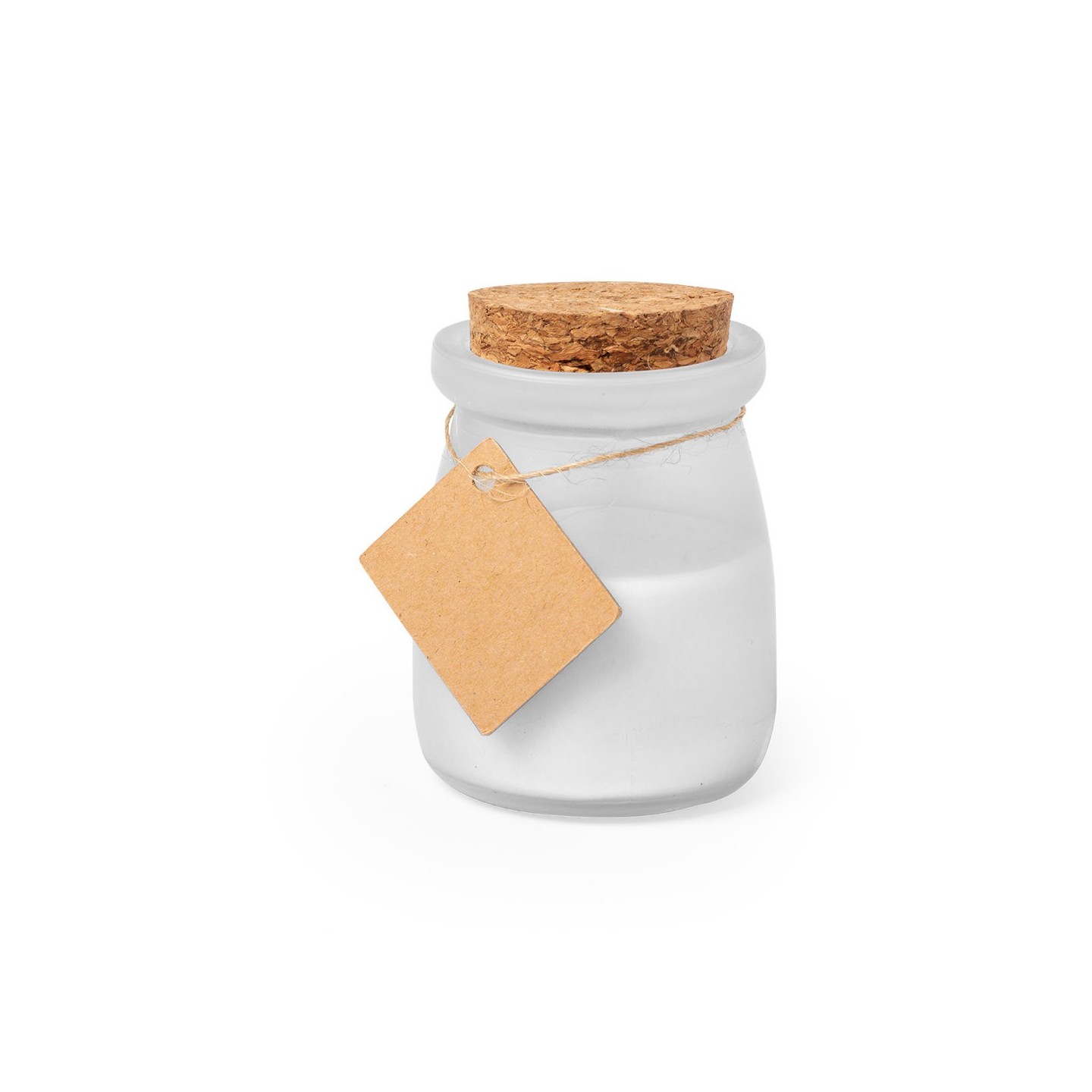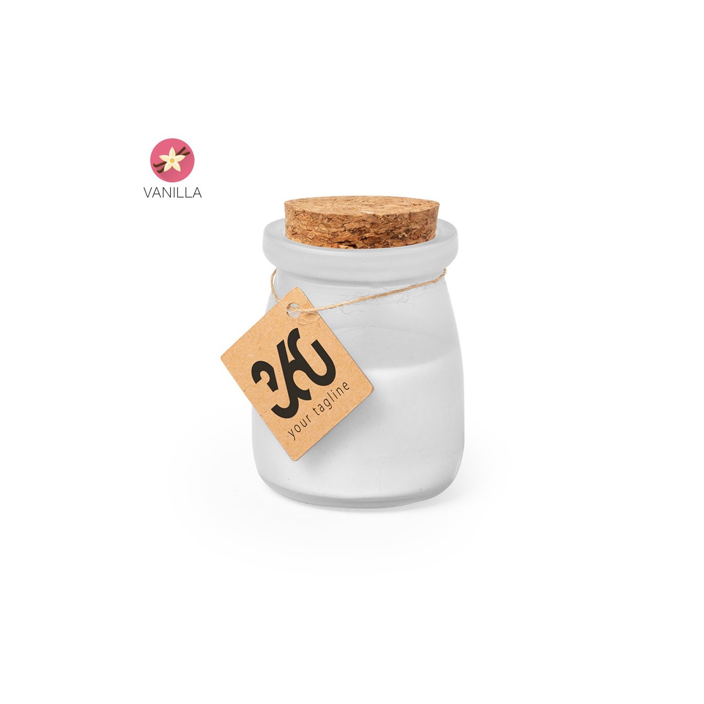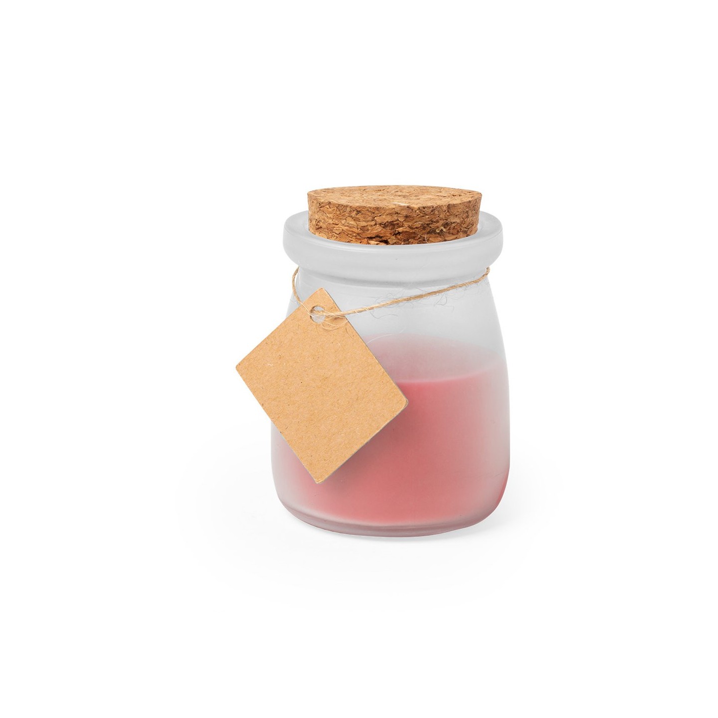 Vela aromática Tepor en tarrito de cristal con tapón de corcho y etiqueta personalizable. Disponible en varios colores. Ideal para regalar o decorar.