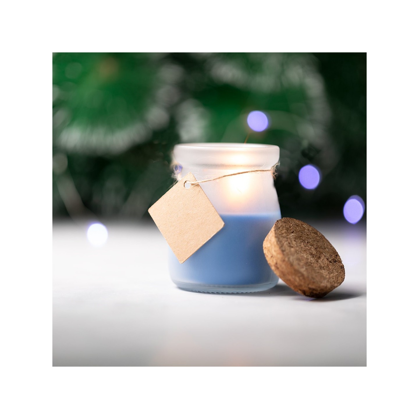 La vela aromática Tepor es perfecta para regalar o decorar. Su tarrito de cristal con tapón de corcho y etiqueta personalizable le da un toque único. Disponible en varios colores.