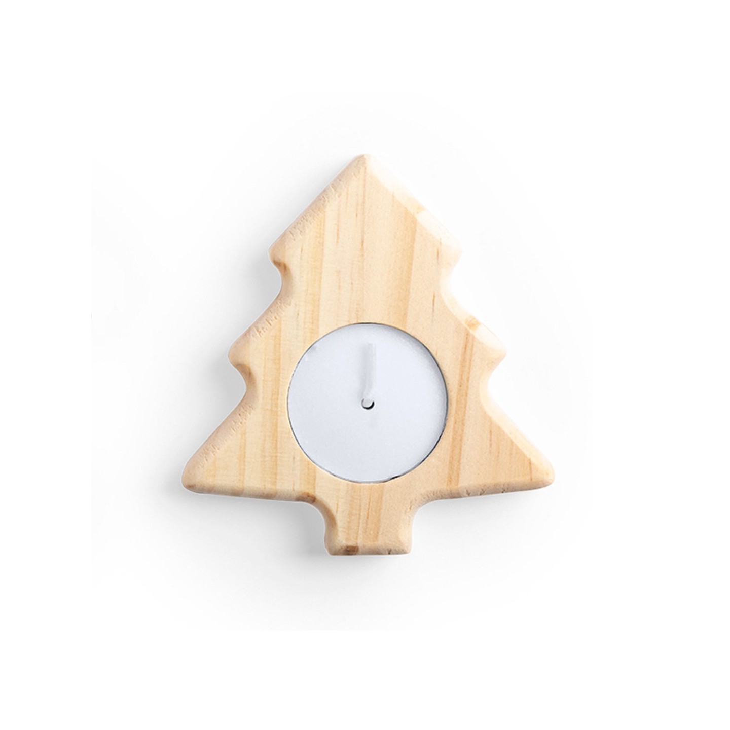 La vela de Navidad en madera de pino con diseño de estrella y arbolito es perfecta para regalos personalizados.