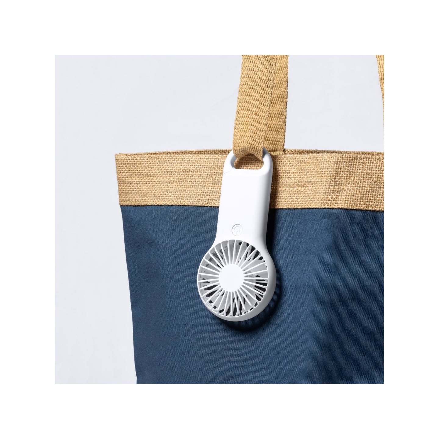 El Ventilador Dayane es potente y portátil, ideal para regalos corporativos. 2 velocidades, resistente ABS blanco. ¡Refresca tu marca!
