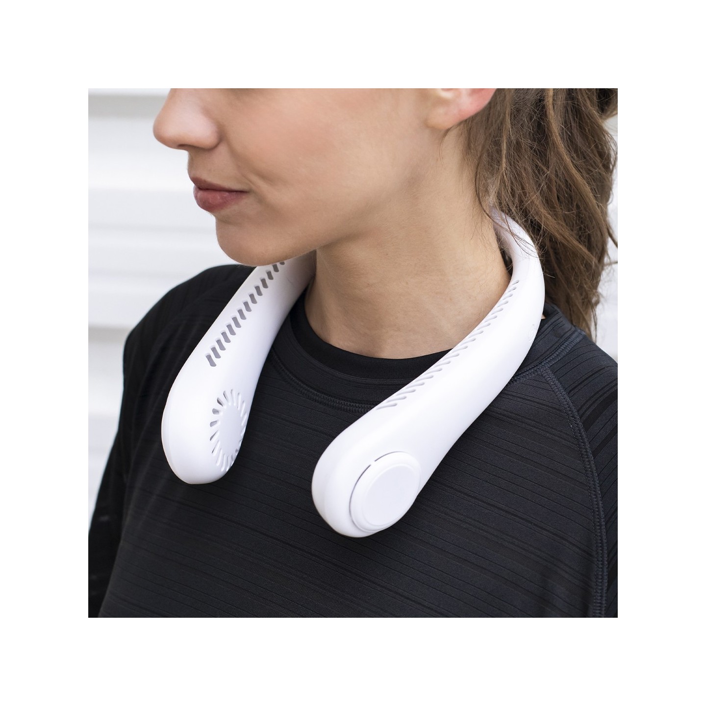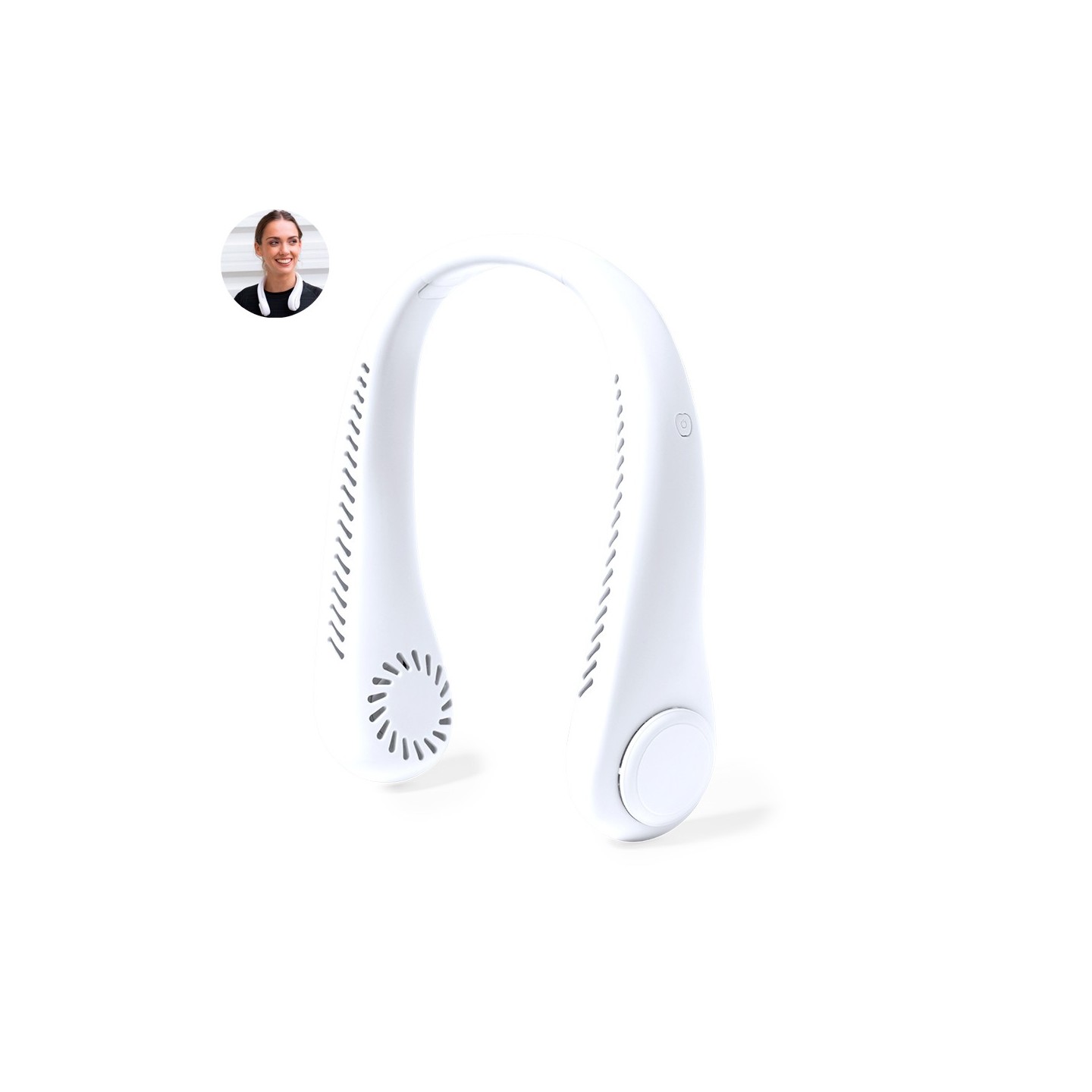 El Ventilador Sherman es portátil y elegante, con diseño de collar para refrescarte. Personalizable con tu logo. ¡Marca la diferencia con estilo!