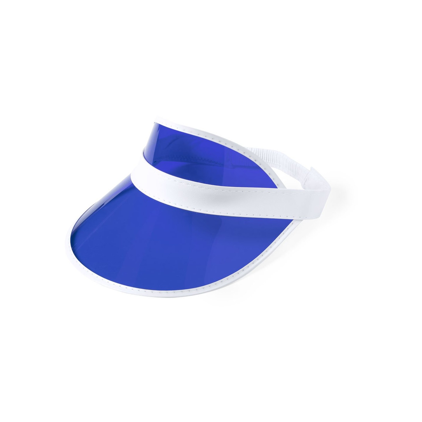 Protección UV y estilo se unen en la original visera Narim. Elige entre varios colores transparentes con detalles en blanco. ¡Personalízala para tu empresa!