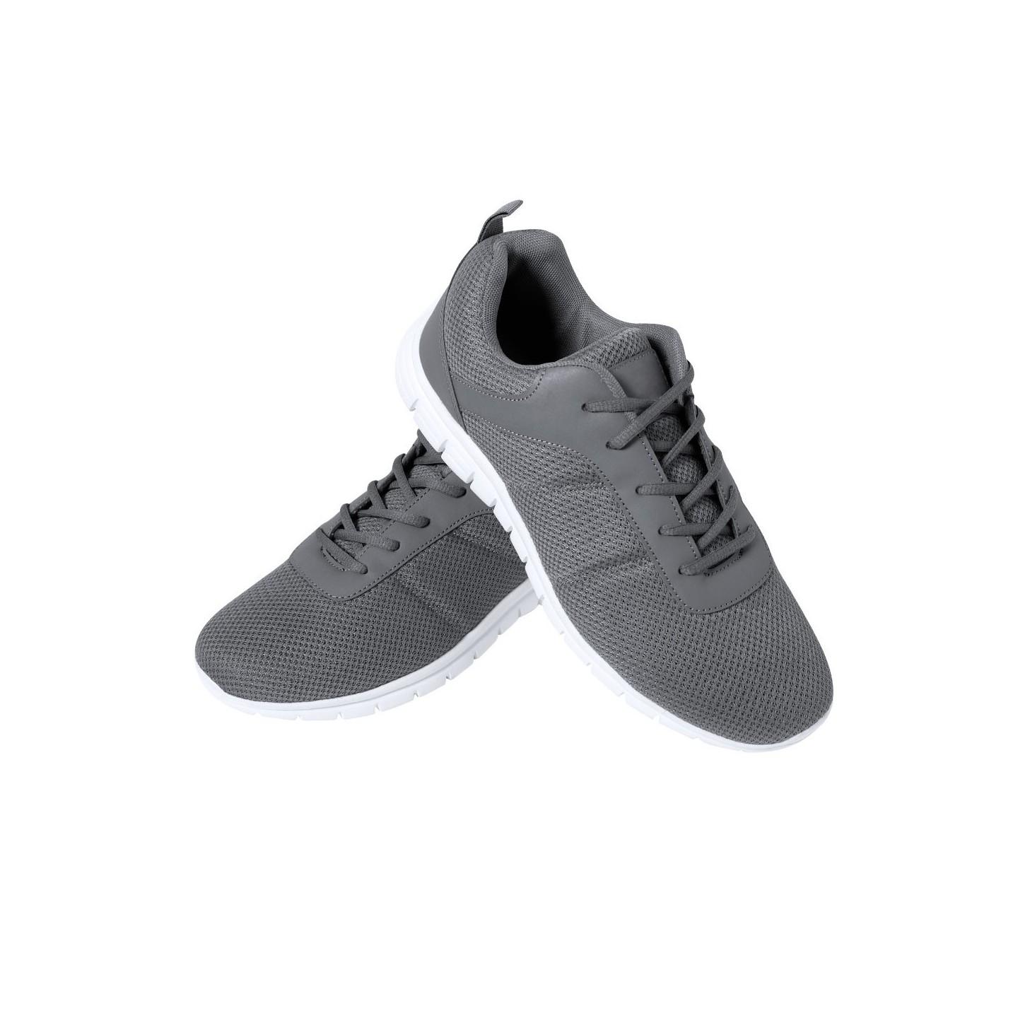 Zapatillas DAKOTA personalizables, ligeras y cómodas. Con suela de goma flexible y cierre con cordones. Disponibles en negro y gris, tallas 36 al 46.